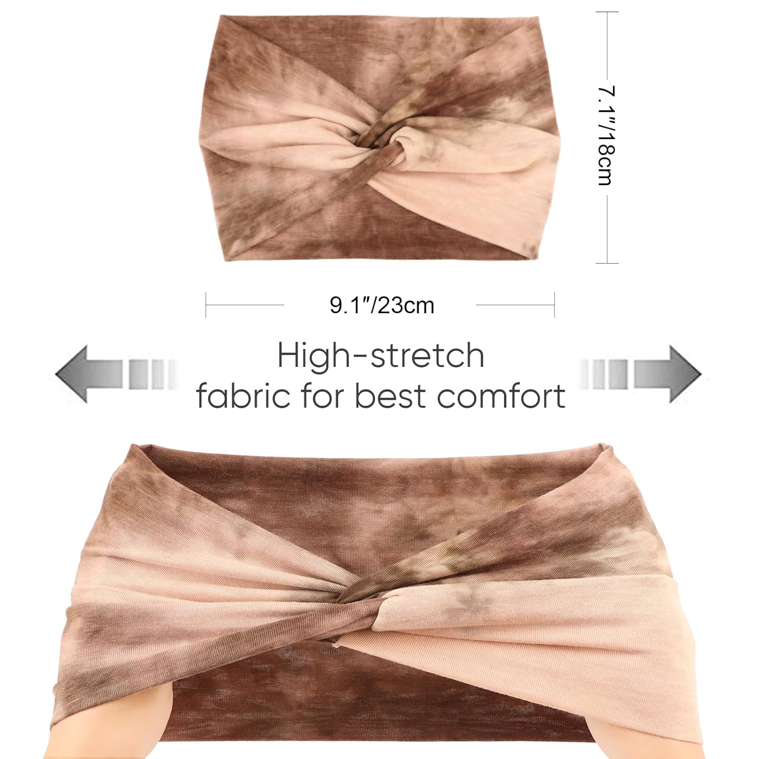 - SIZE: The wide headband measures 9.1"/23cm in length, 7.1"/18cm in width and can be stretched easily, one size fits most, stretchy and very soft.