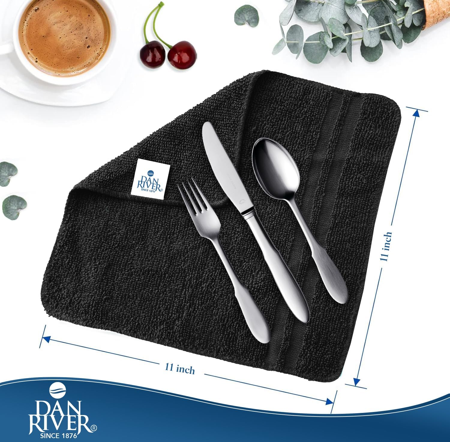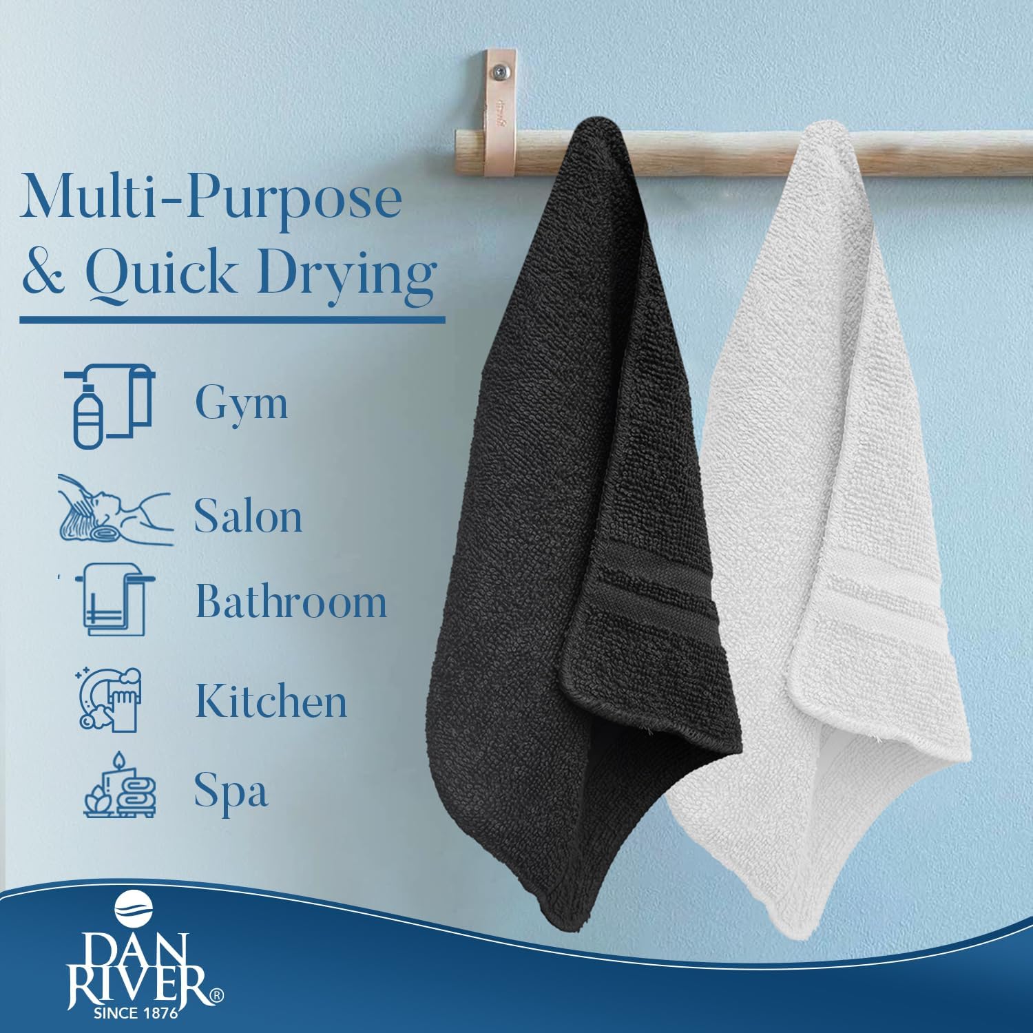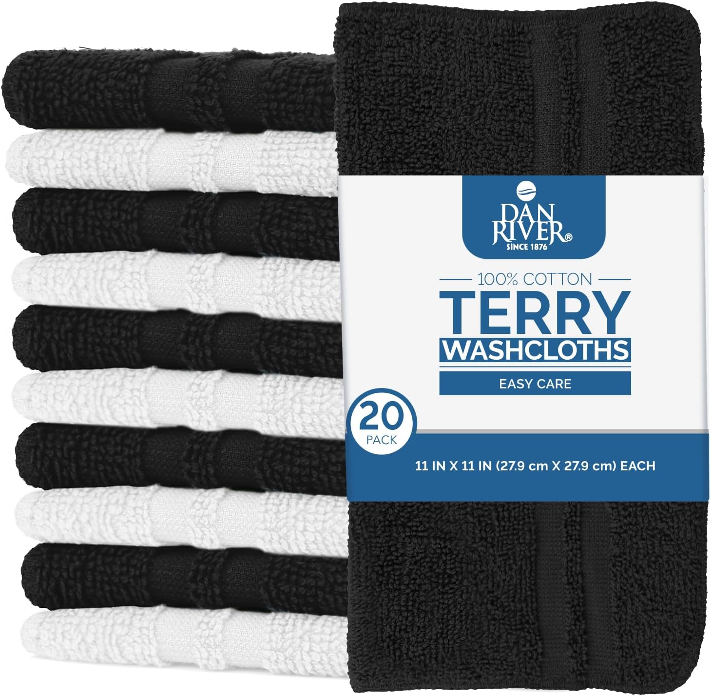 DAN RIVER 100% Cotton Washcloths 20 Pack Premium Quality Face and Body Cloth, Quick Dry Essential Towels for Bathroom, Hand, Kitchen & Cleaning, Baby Washcloths | 11X11 in | 400 GSM | Black+White