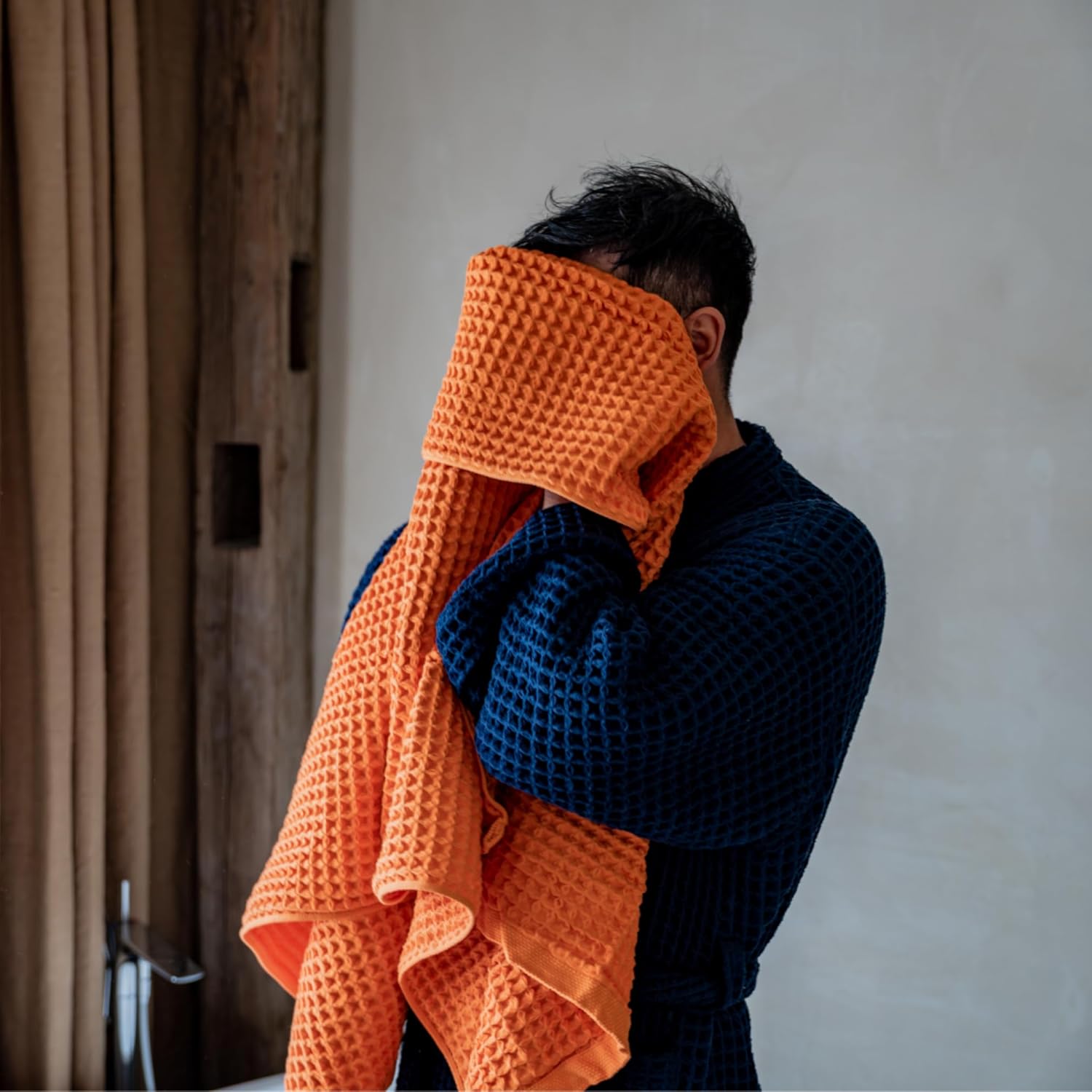 Luxury Japanese Cotton Waffle Bath Towel | Plush, Absorbent, and Quick Dry | Free Storage Bag Included (Coral Orange, Bath Towel (Set of 2))