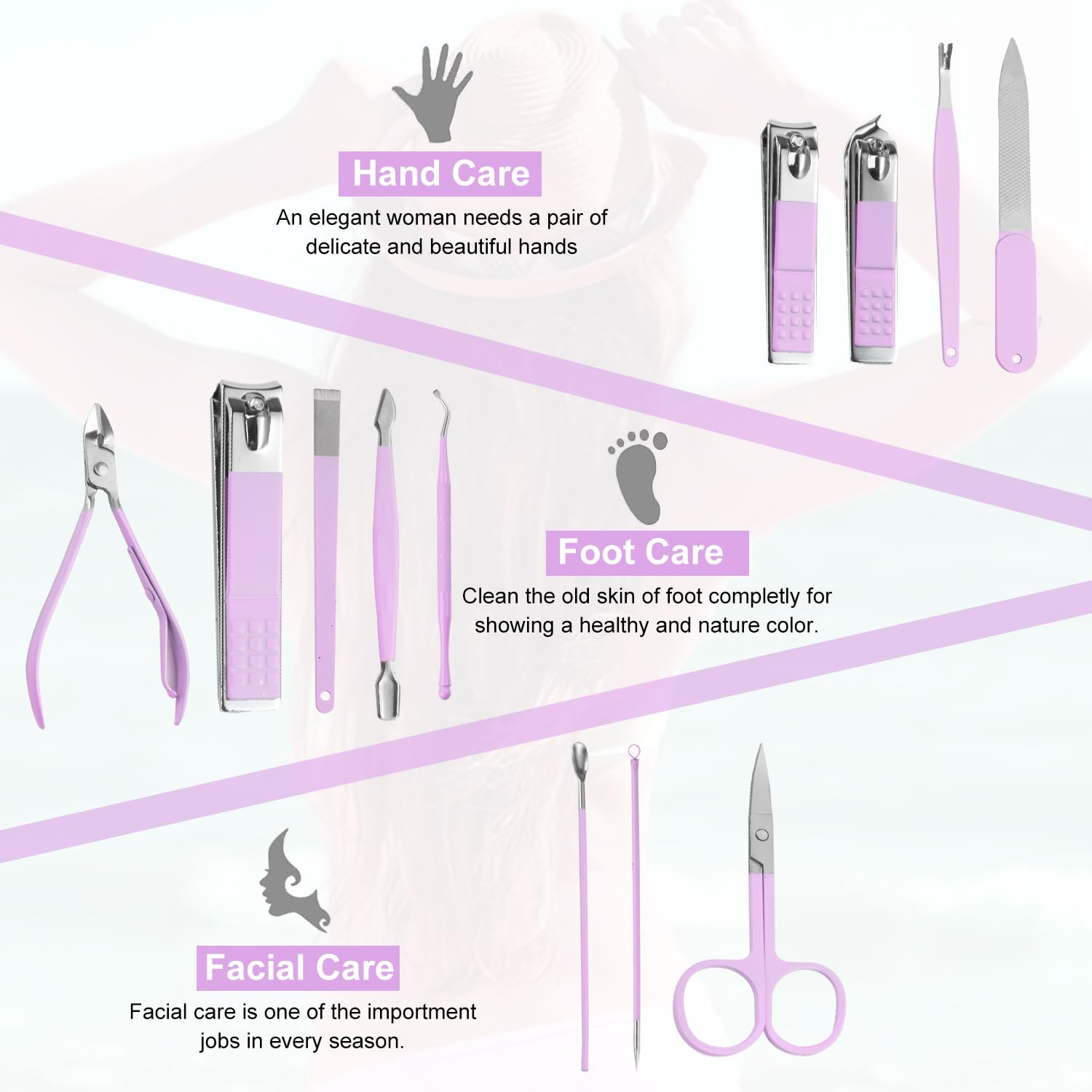 Nail Kit, Manicure Kit, Nail Care Kit for Women, Manicure Pedicure Set, Nail Clippers Toenail Clippers Kit, Professional Manicure Kit Pedicure Kit, Purple Travel Case, Set of 12.