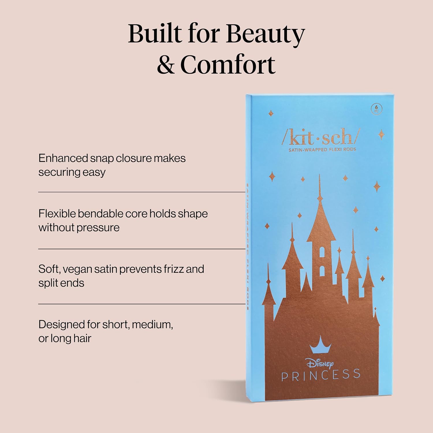 Disney & Kitsch Satin Heatless Curling Rod - Hair Curler Set, Heatless Curls Overnight, Hair Rollers for Soft Curls & Frizz-Free Styling, No Heat Curlers To Sleep in - 6pcs, Disney Princess