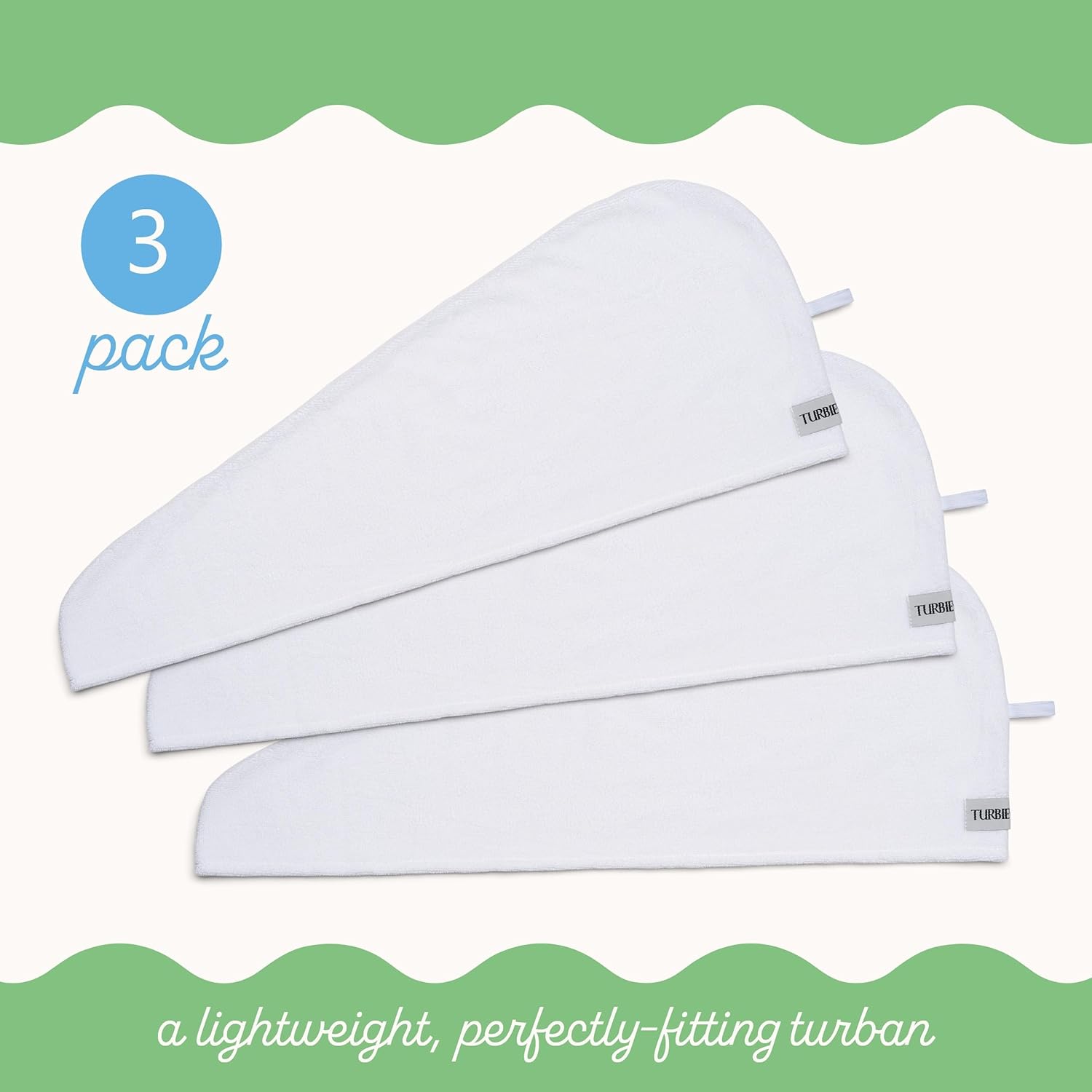Turbie Twist 3-Pack Cotton Hair Towel Wrap for Beauty, Travel, Gifting - Fast-Drying Hair Turban for Luxurious Hair Care - For All Hair Types & Lengths - White