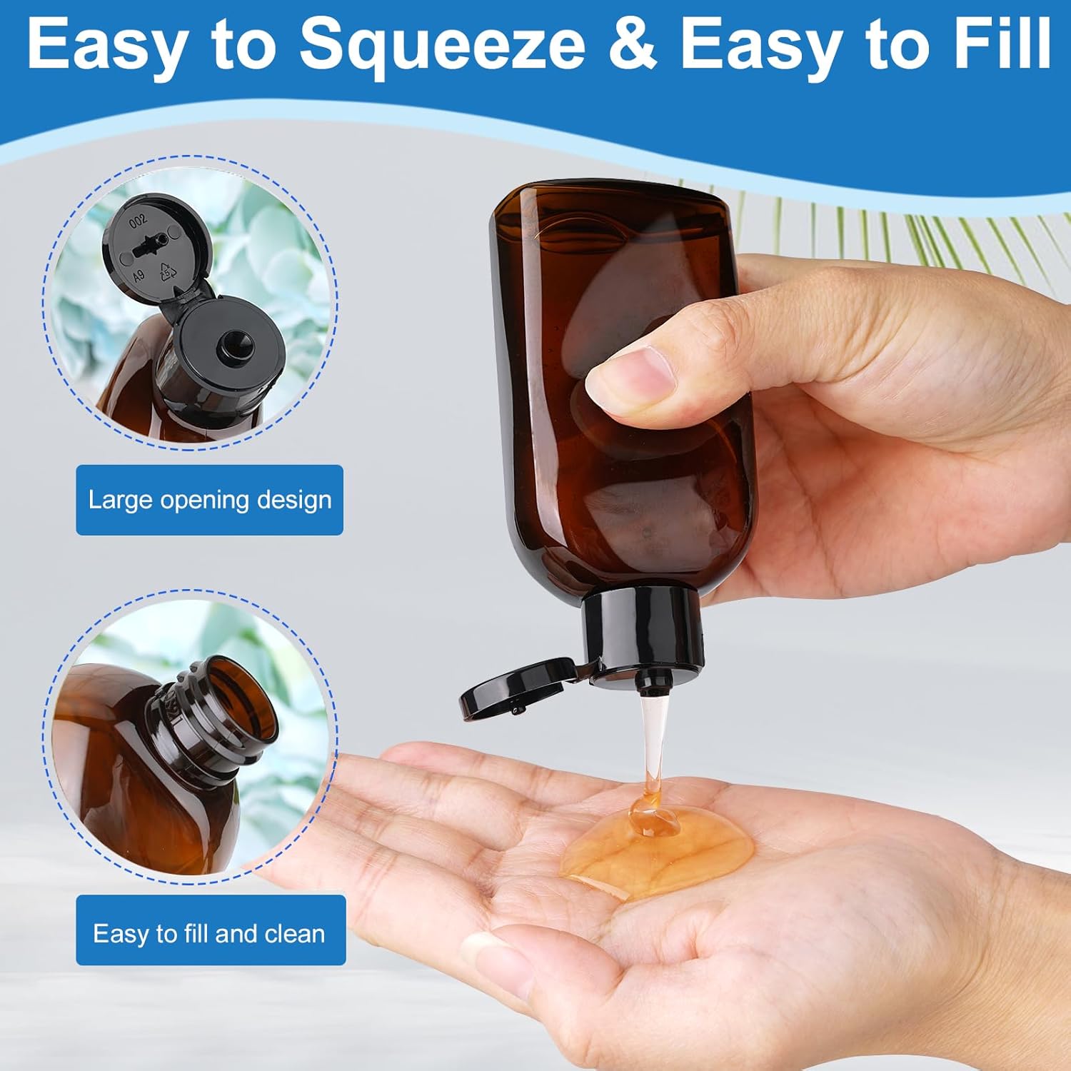 - High-Quality and Leak-proof Squeeze Bottle: Made of sturdy, reusable PET plastic, these travel size toiletries bottles are lightweight and space-saving; The flip caps of these travel bottles are designed with a tight seal to prevent leakage or spills and ensure that your personal care products stay secure and no mess, perfect travel shampoo bottles, empty travel size bottles.