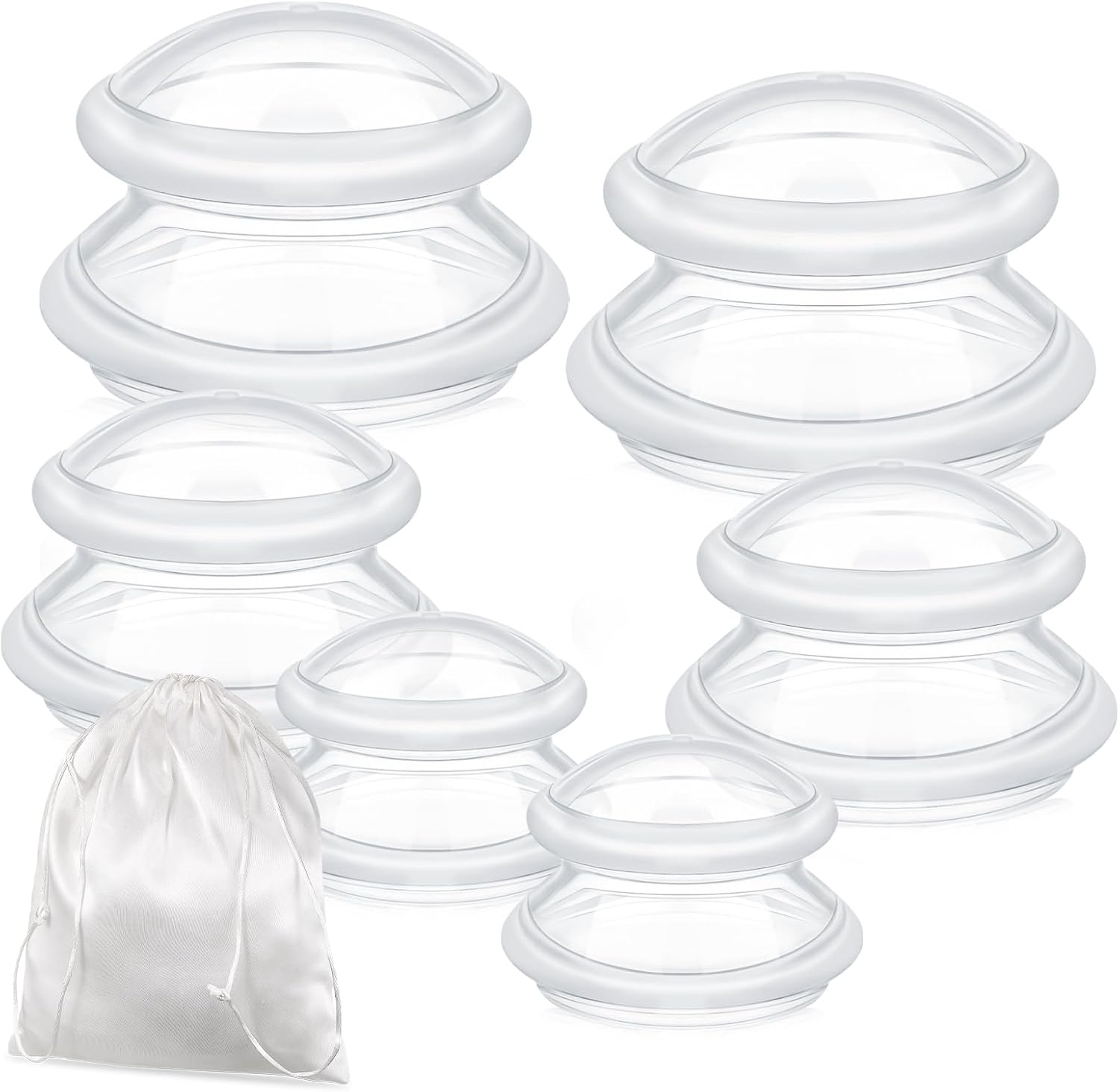 TrelaCo 6 Pcs Cupping Kit for Massage Therapy 3 Sizes Silicone Cupping Set Chinese Massage Therapy for Studio Household Cellulite Joint Pain Muscle Pain(Clear)