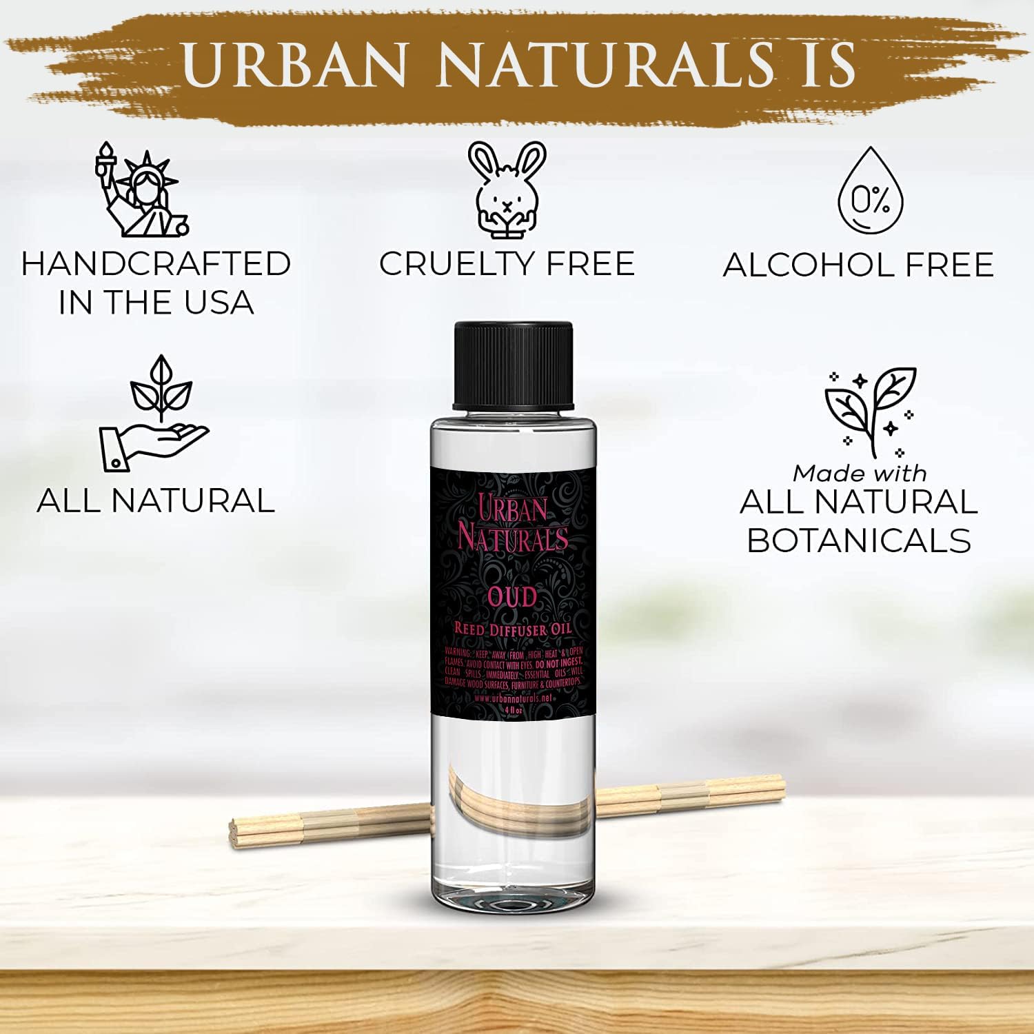 Urban Naturals Reed Diffuser Oil Refill, Oud Diffuser Oil with Raspberry, Warm Amber, Bergamot, 4 oz + Free Reed Sticks, Made in The USA