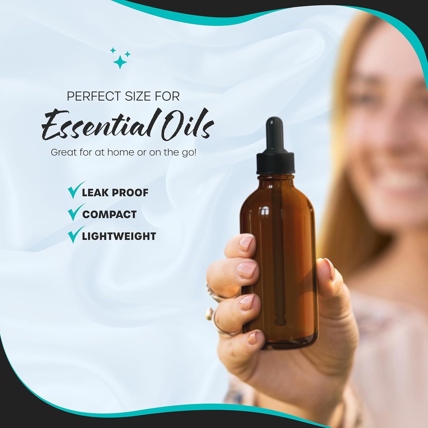 - VERSATILE AMBER GLASS DROPPER BOTTLES 4 OZ SET: The Nevlers 24 pack of amber dropper bottles keeps your oils, serums, tinctures & medicines fresh & secure. Each dropper bottle 4oz container is made from thick glass for durability & leak resistance, making them perfect amber tincture bottles with dropper , serum bottles with dropper , or amber bottles with dropper for essential oils & DIY projects. Upgrade your storage with this 4 oz dropper bottles glass bundle for home or professional use.