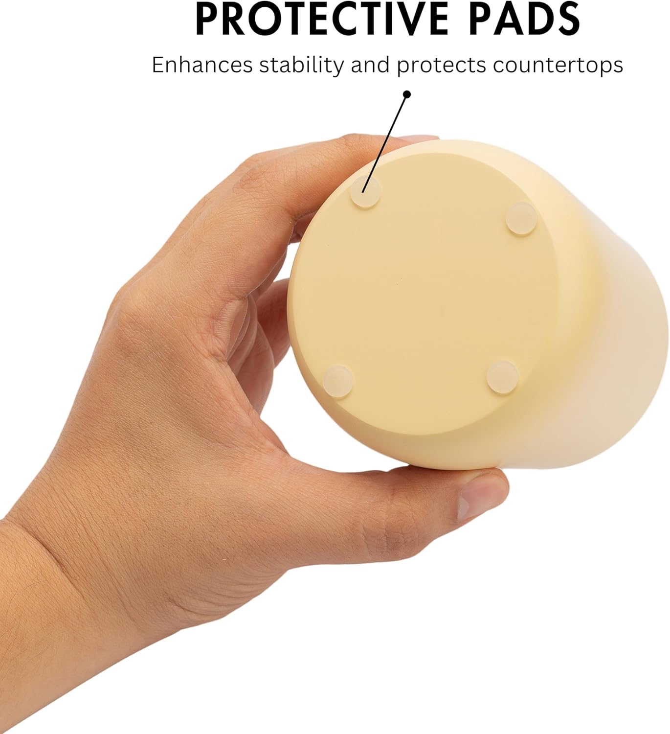 Matte Yellow Cream Toothbrush and Toothpaste Holder and Cup for Bathroom Vanity and Countertop, Round Organizer for Electric Toothbrushes, Floss, Razors, Cotton, and Mouthwash