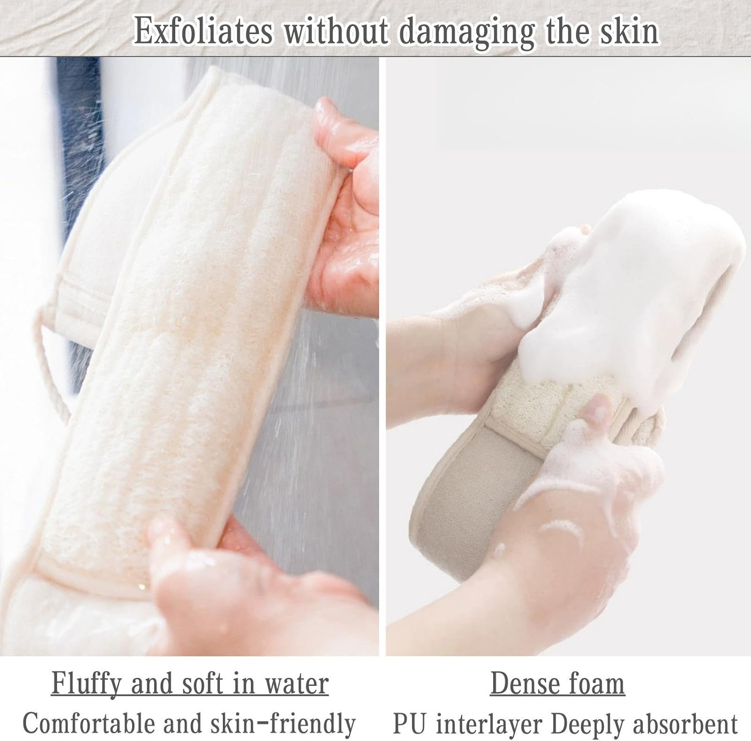 - [HEALTHY CLEANSING] Thisloofah Exfoliating Body Scrubber Is a Must-Have For Your Skincare Routine. Before Bathing, Please Luffa Sponge Immerse It In Warm Water To Soften It To Achieve The Effect Of Use. He Unique Texture Of The Shower Loofah Helps To Remove Dead Skin Cells, Unclog Pores, And Promote Healthy Blood Circulation, Resulting In Smoother And Healthier Skin.