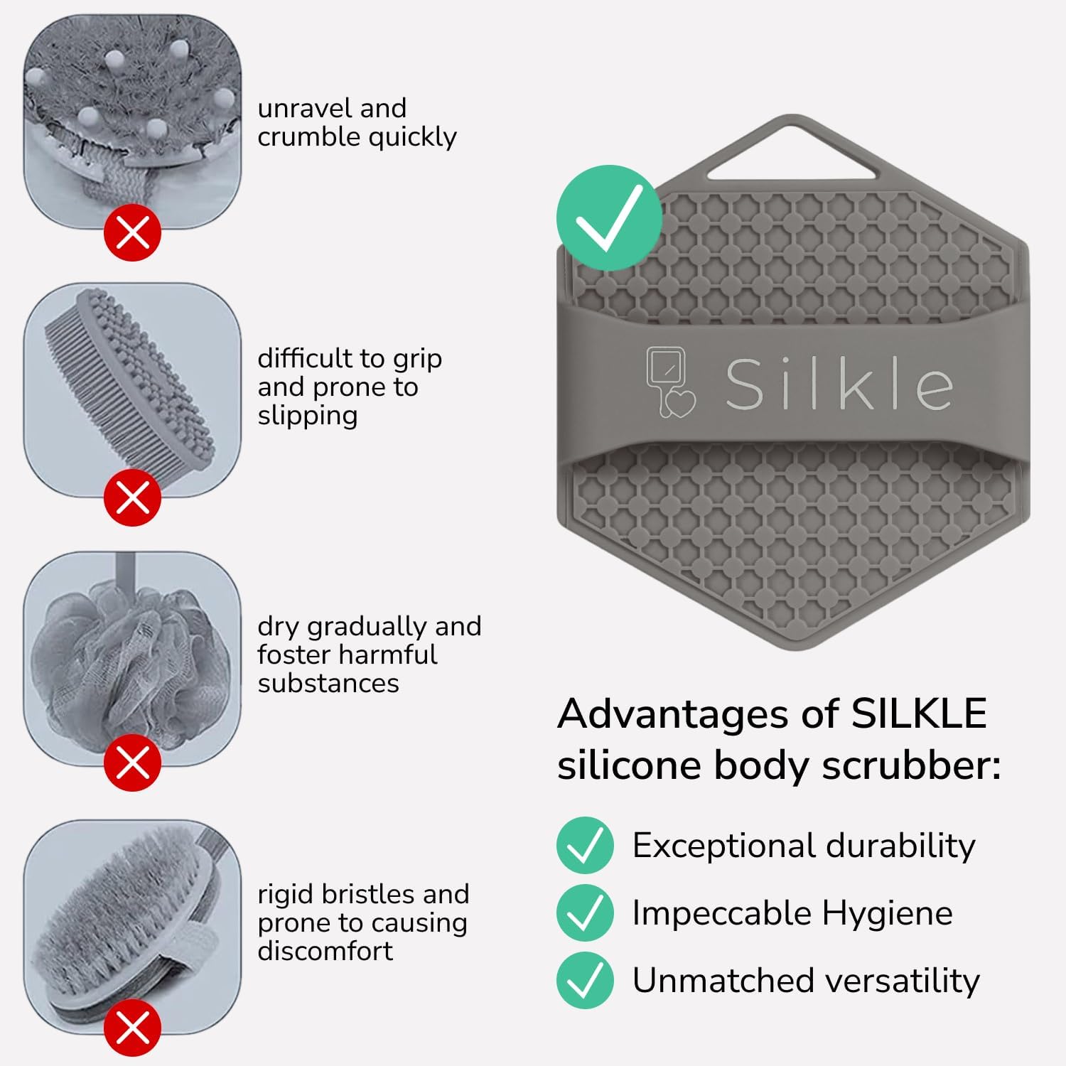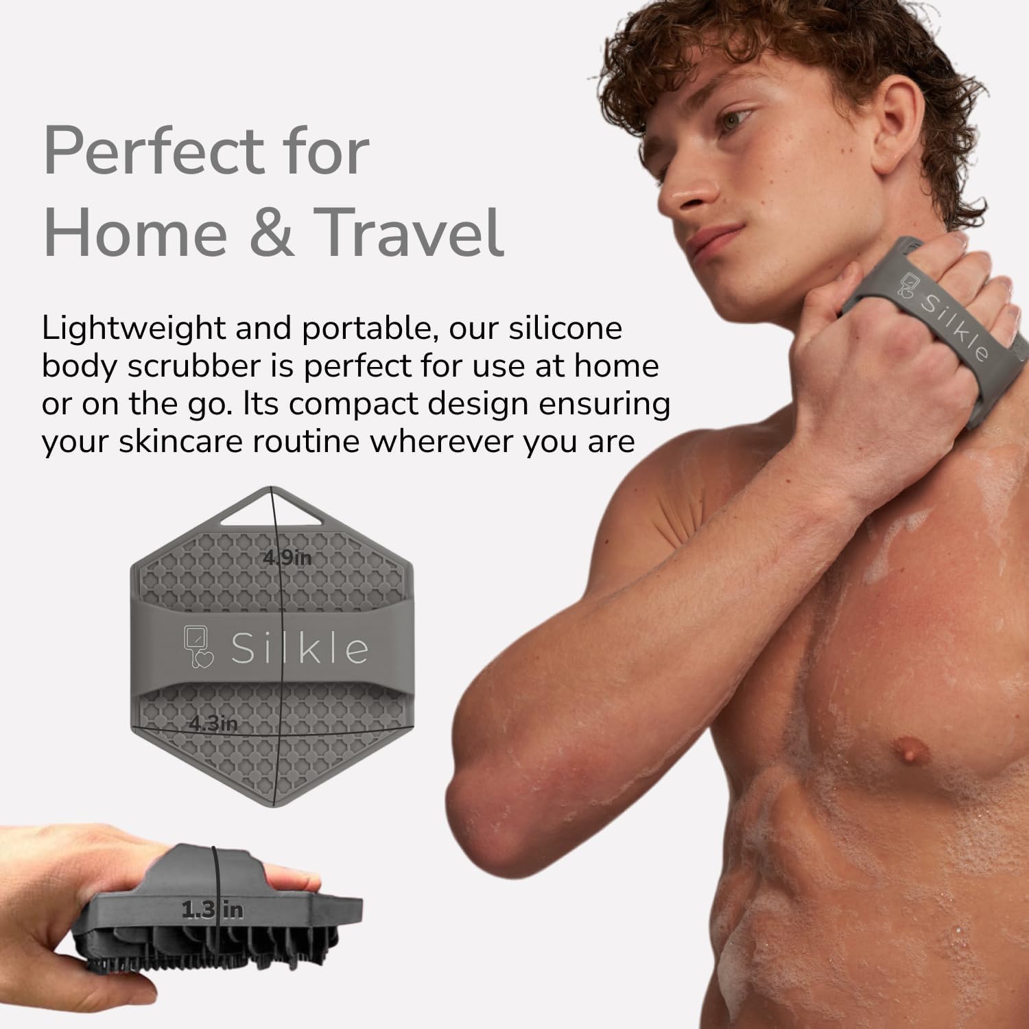 Silicone Body Scrubber - Exfoliating Bath Brush and Skin Cleanser - Shower Sponge for Gentle Body Scrub and Wash - Silicone Scrubbing Care Tool for a Refreshed and Renewed You - Gray