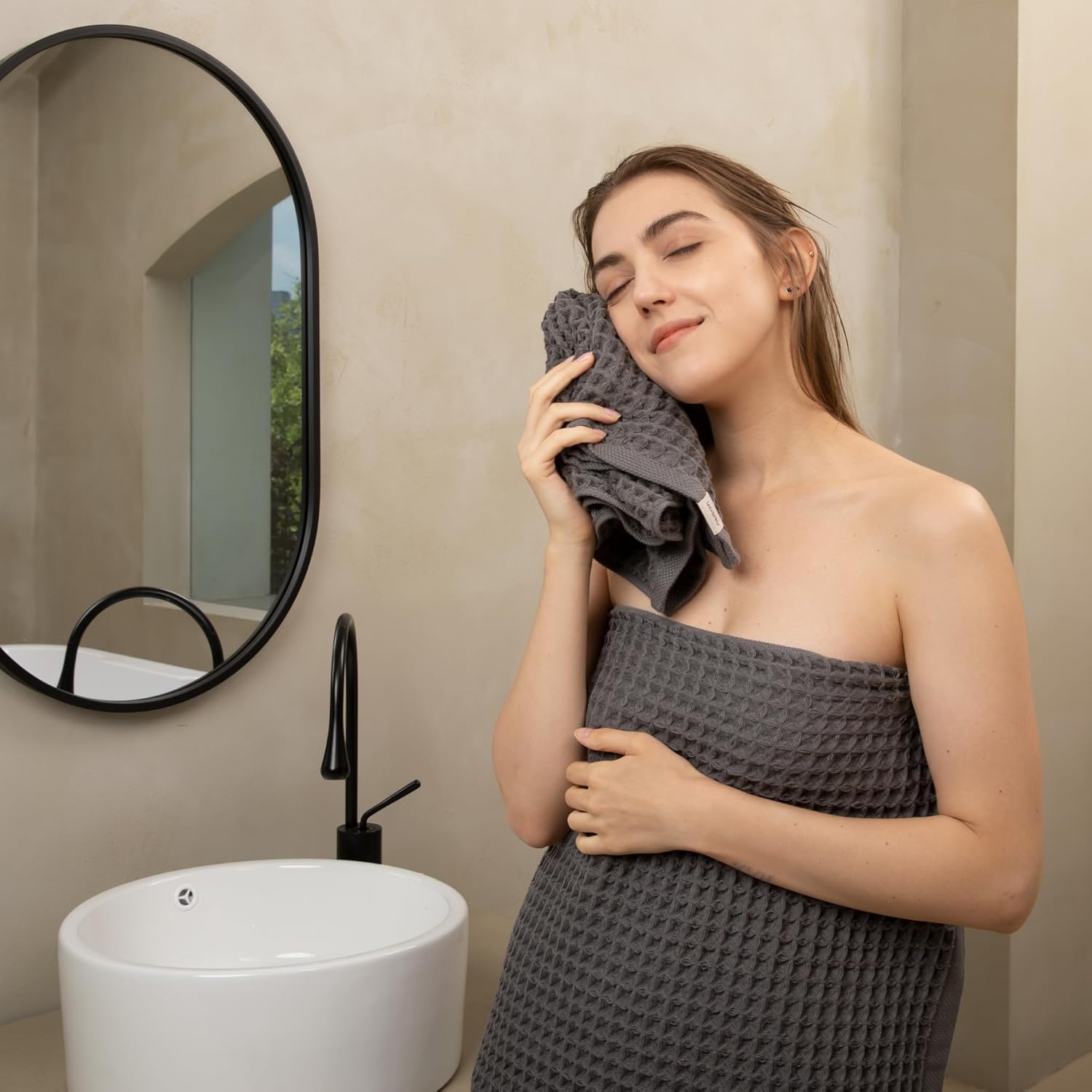 - A dry towel is a clean towel. The airy waffles effectively prevent the multiplication of odor caused by bacteria and fungus. You will never reach out to a wet, musty towel after a shower anymore.