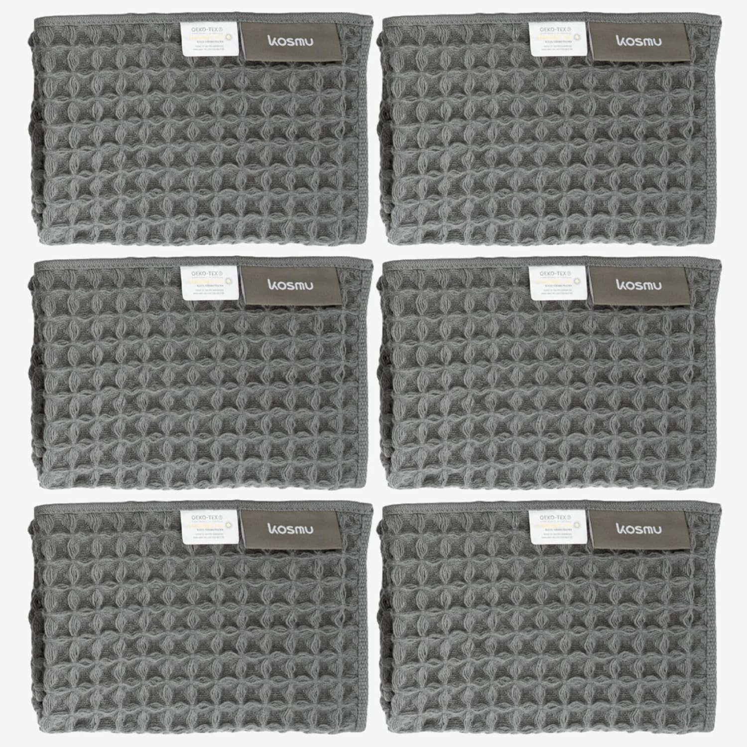 Luxury Japanese Cotton Silk Waffle Bath Towel | Plush, Absorbent, and Quick Dry (Smoke Grey, Face Towel (6 Pack))
