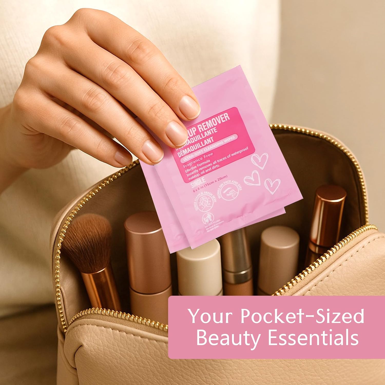 - Individually Wrapped Makeup Remover Wipe β Each ultra soft 6" x 8" makeup remover wipe is sealed for hygiene and convenience. A must-have for travel kits, bachelorette party goodie bag, gym essentials, guest welcome bags, and overnight stays.