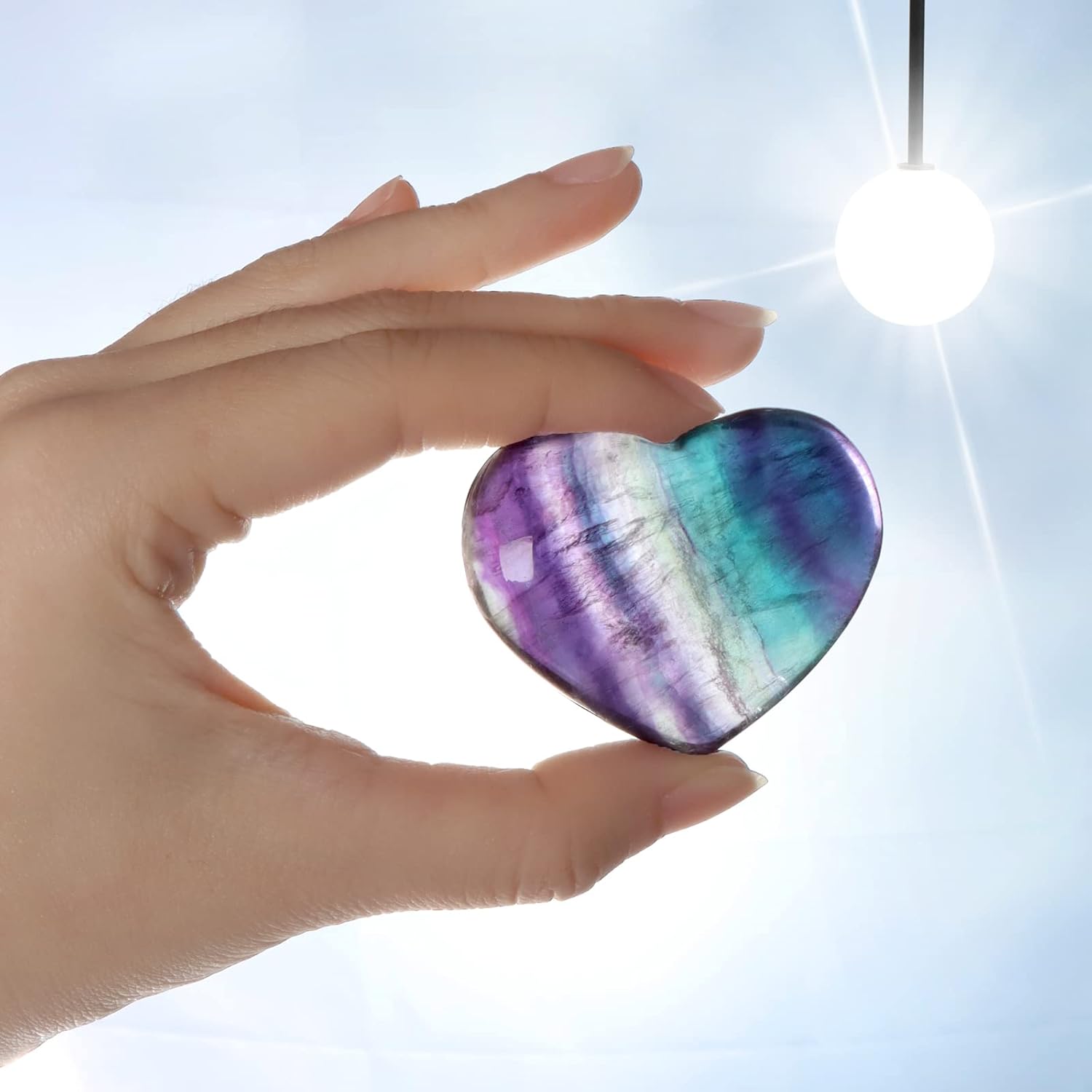 - 【PERFECT CRYSTAL GIFTS】Rainbow fluorite crystal hearts make very special personal gifts. Arrive to someone full of positive energy and cleansed of all negative vibrations. A great Housewarming, Birthday, New Year, Christmas decorations, Mother's Day, Valentine Gift.