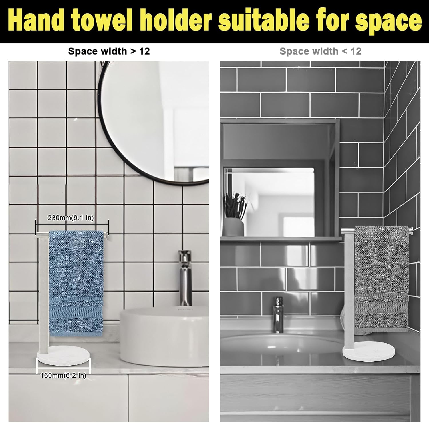 - L-shaped hand towel holder: The bathroom towel rack has an L-shaped design, which can hold multiple towels at the same time, saving space and making your bathroom look more organized. The stable base provides ample space to hang towels and other bath accessories