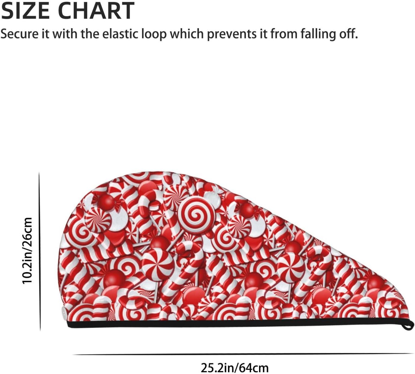 Christmas Swirl Candy Hair Towel Wrap Microfiber Fast Drying Hair Turban with Buttons for Women Drying Curly, Long & Thick Hair