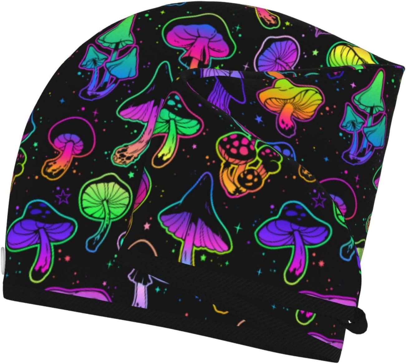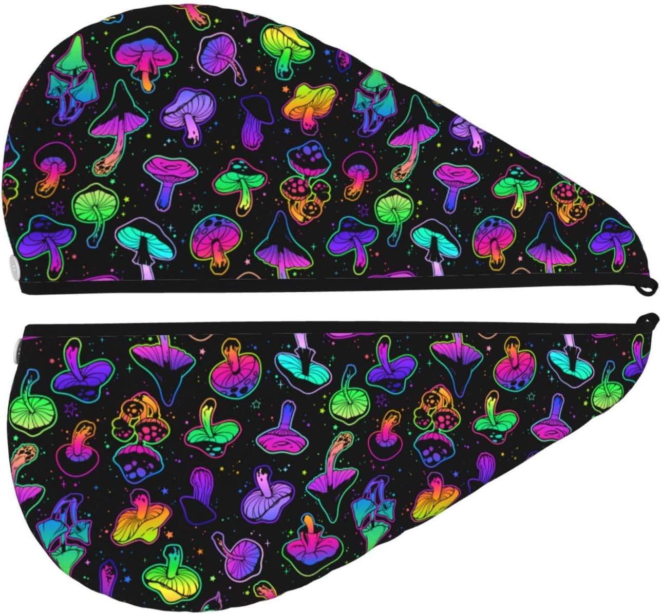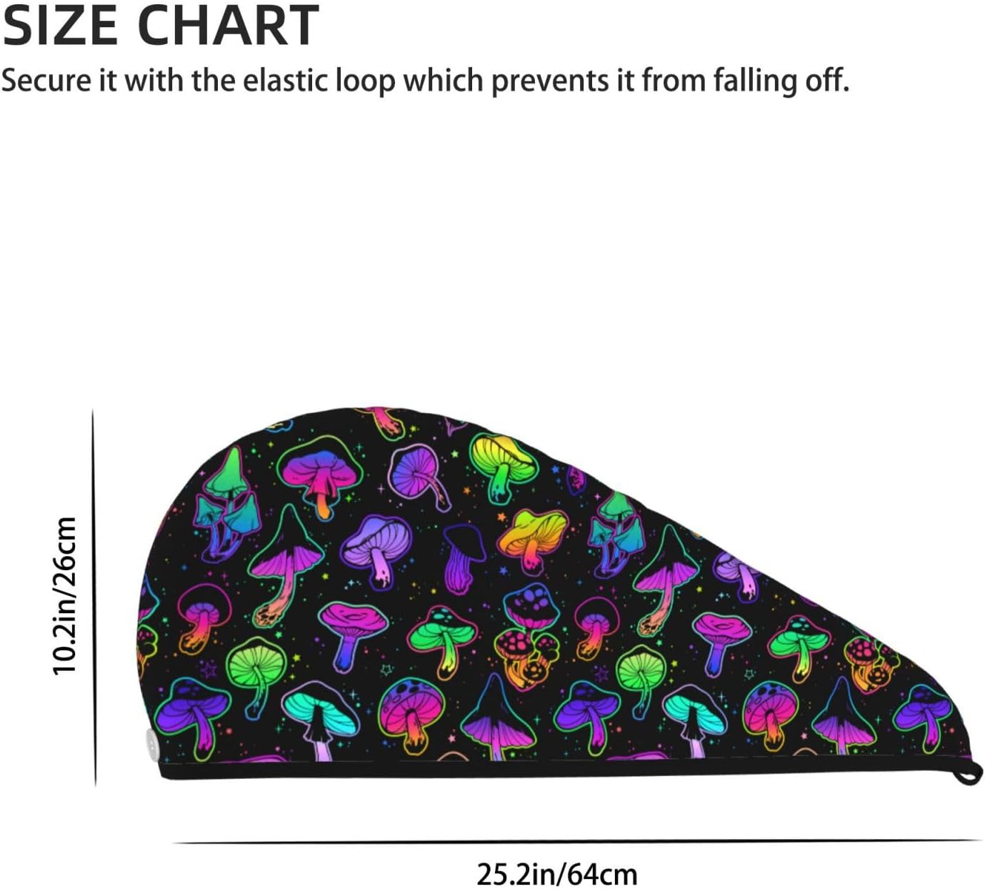 Mushrooms Hair Towel Wrap Microfiber Fast Drying Hair Turban with Buttons for Women Drying Curly, Long & Thick Hair