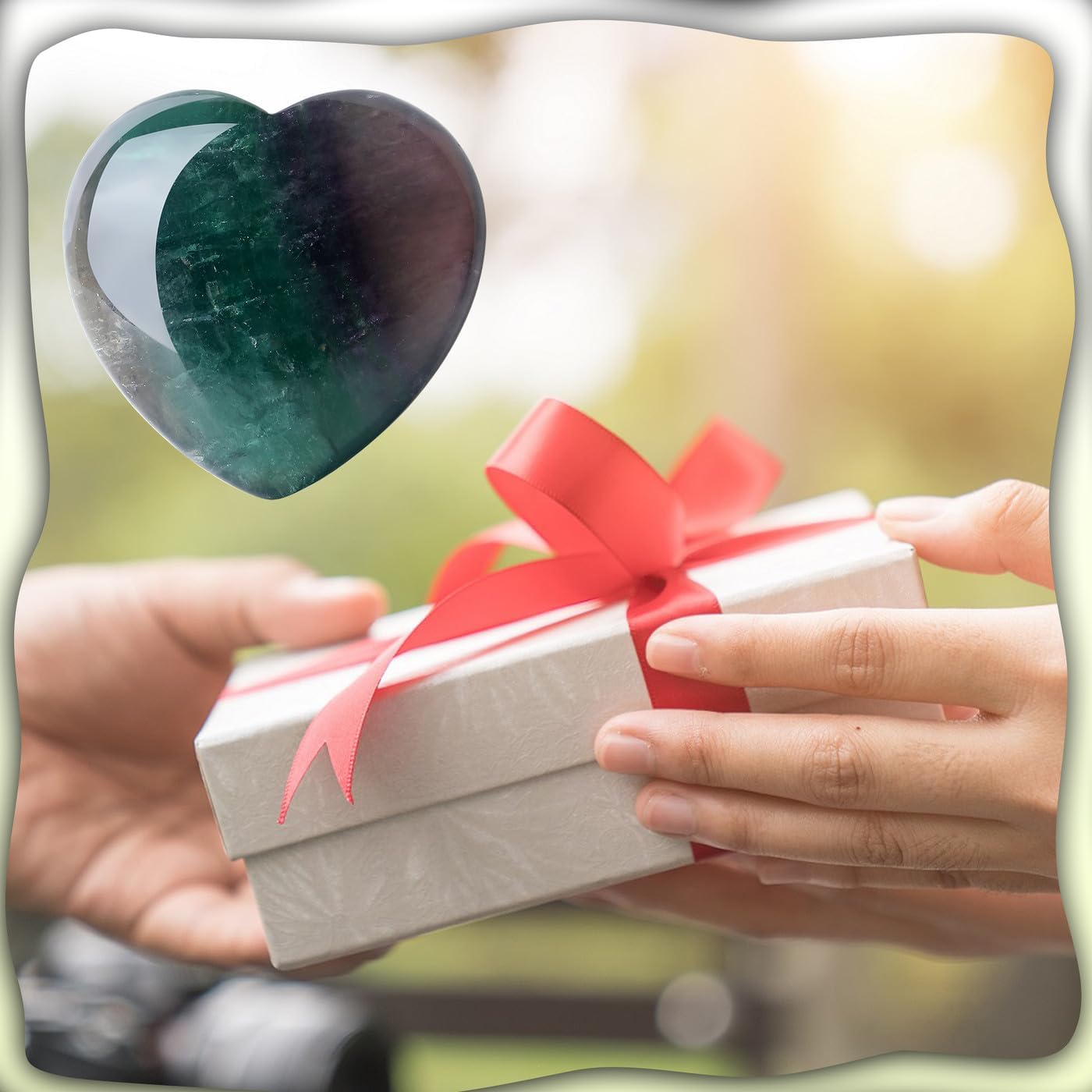 - 【Natural Crystal】: Our love heart-shaped crystal healing stones are crafted from natural crystal, and each stone is uniquely polished, resulting in slight color variations. Natural Fluorite. Heart Crystals Size: 2.36*2.36*0.86 inch. Crystal Weight: 100g.