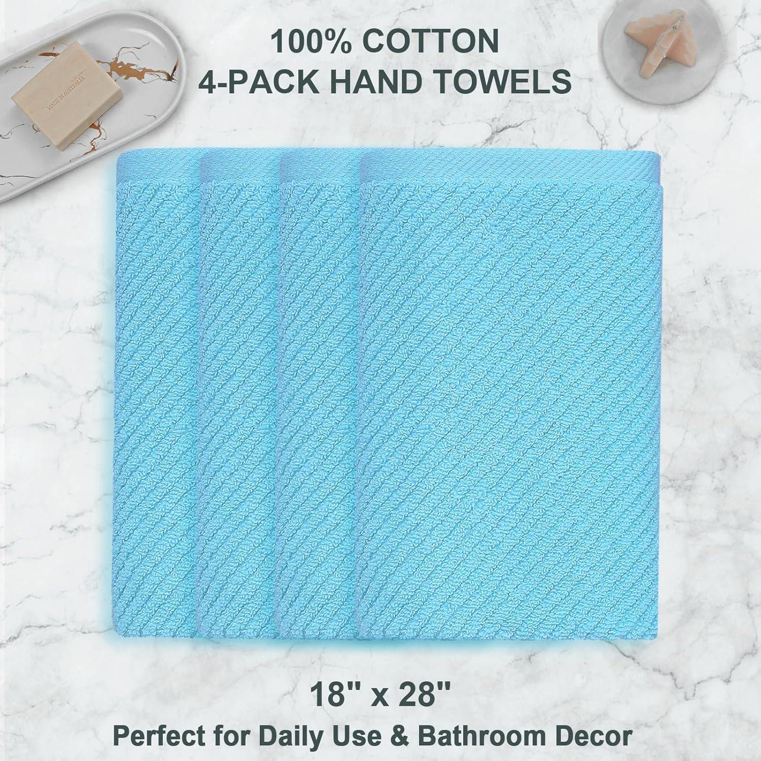 - 【Luxury 4PC Hand Towel】 Indulge in the ultimate luxury with our 4-piece hand towel set. Made from 100% premium lightweight cotton and sized at 18 x 28 inches, these towels are ultra-absorbent, quick-drying, and durable. Their low-linting design and zero-twist construction ensure long-lasting performance. Enjoy their fade-resistant, low linting, breathable, and long-lasting features