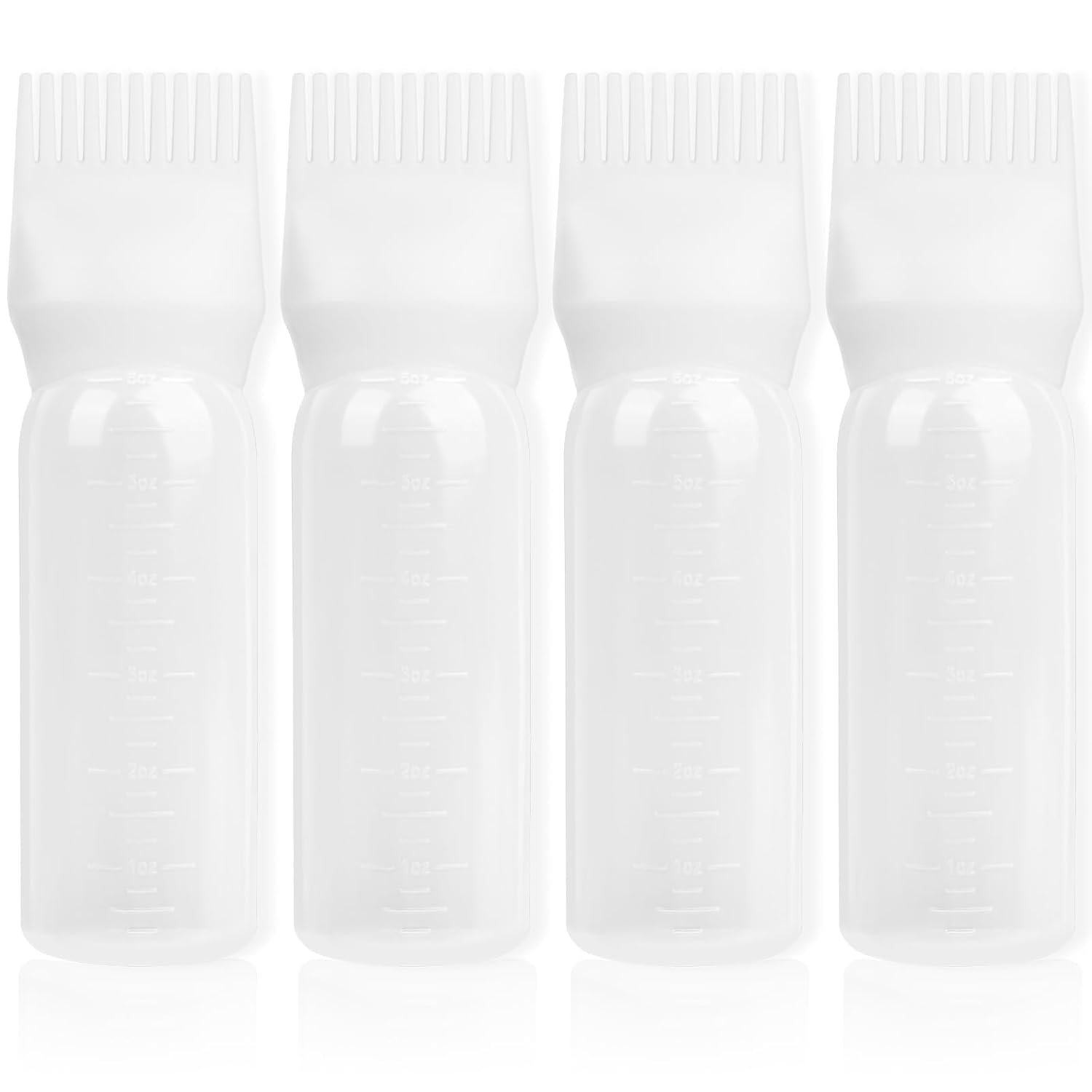 BLAAROOM Root Comb Applicator Bottle 6 Ounce, 4 Pack Hair Oil Applicator with Root Comb Brush for Scalp Hair Oiling - White