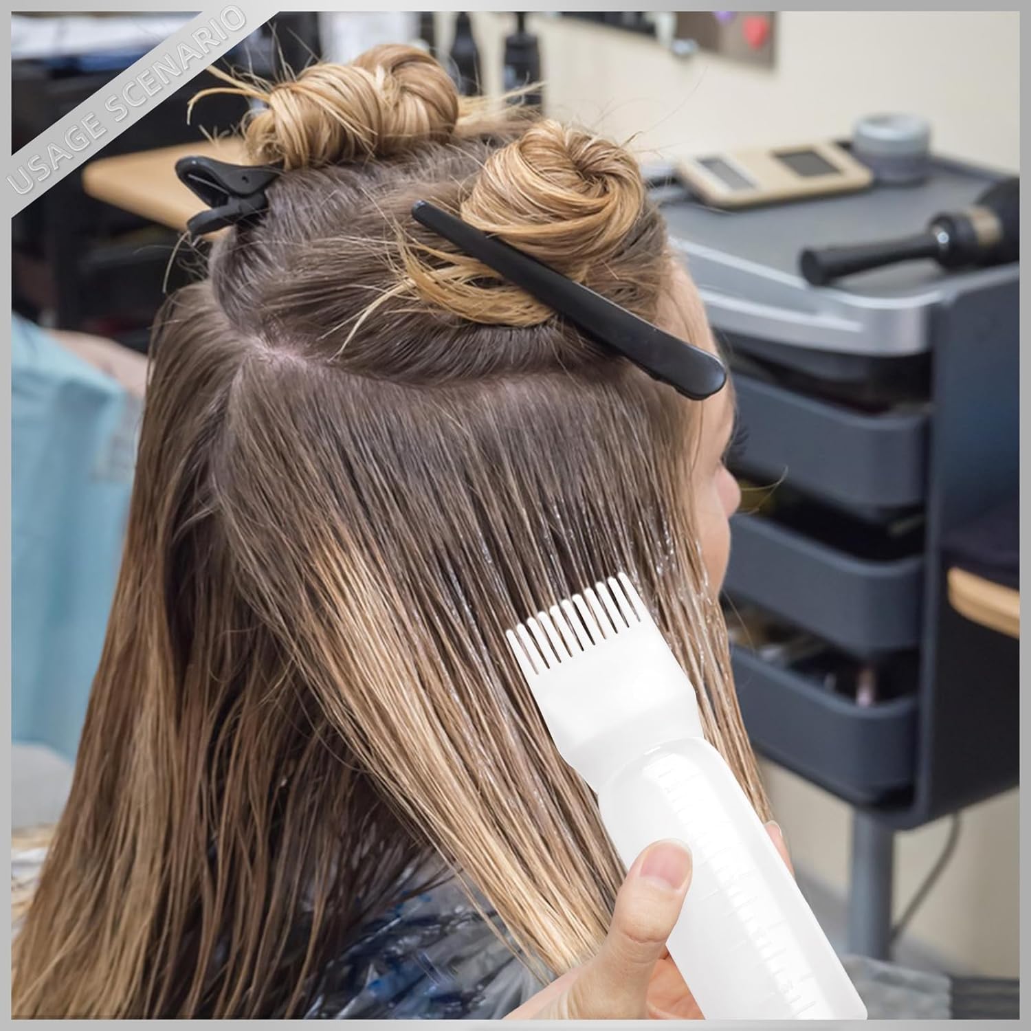 - Hair Oil Applicator Bottle: An ideal hair oil applicator that allows the user to easily and evenly apply oil to their hair roots without any mess or spillage, thanks to its convenient comb applicator design.