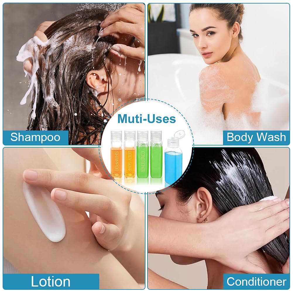 - Muti-Uses: These plastic travel bottles for toiletries accessories are suitable for a variety of personal care products, such as shampoo, conditioner, lotion, toner, essential oil, makeup remover oil, cosmetics and more. Plus, the bottles are empty, allowing you to fill them with any product you need to take with you for indoor or outdoor activities like traveling, hiking, or camping.
