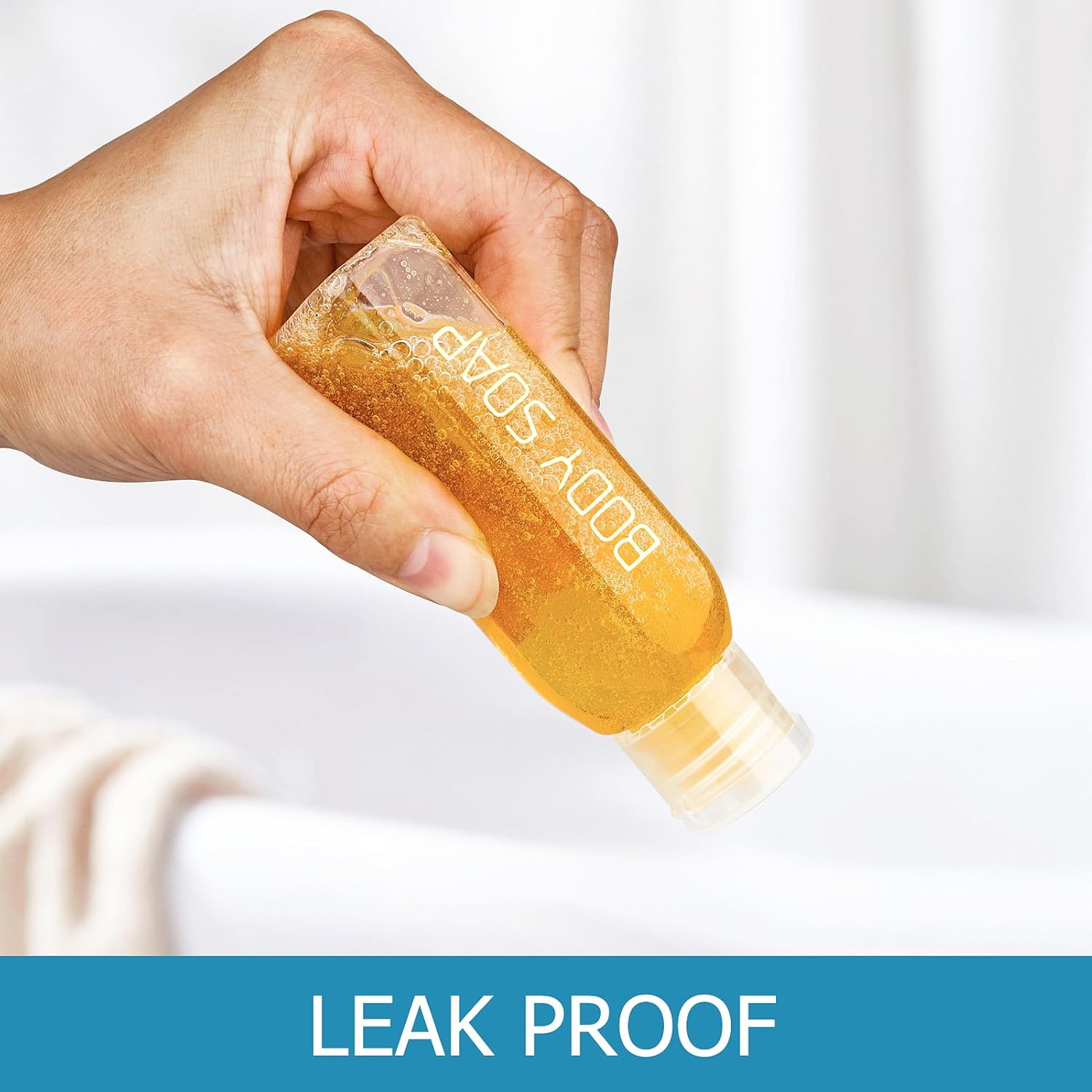 - Your satisfaction is always our top priority, we will do our best to meet your satisfaction. Versatile and Customizable travel toiletry bottles: These 3 empty bottles come with clear labeling for "Shampoo" ,"Conditioner", and "Body Soap", printed directly on the bottle's surface, ensuring that you don't mix up your products while on the go; Additionally, the fourth and five empty bottle is left blank, giving you the option to customize it to fit your specific needs.