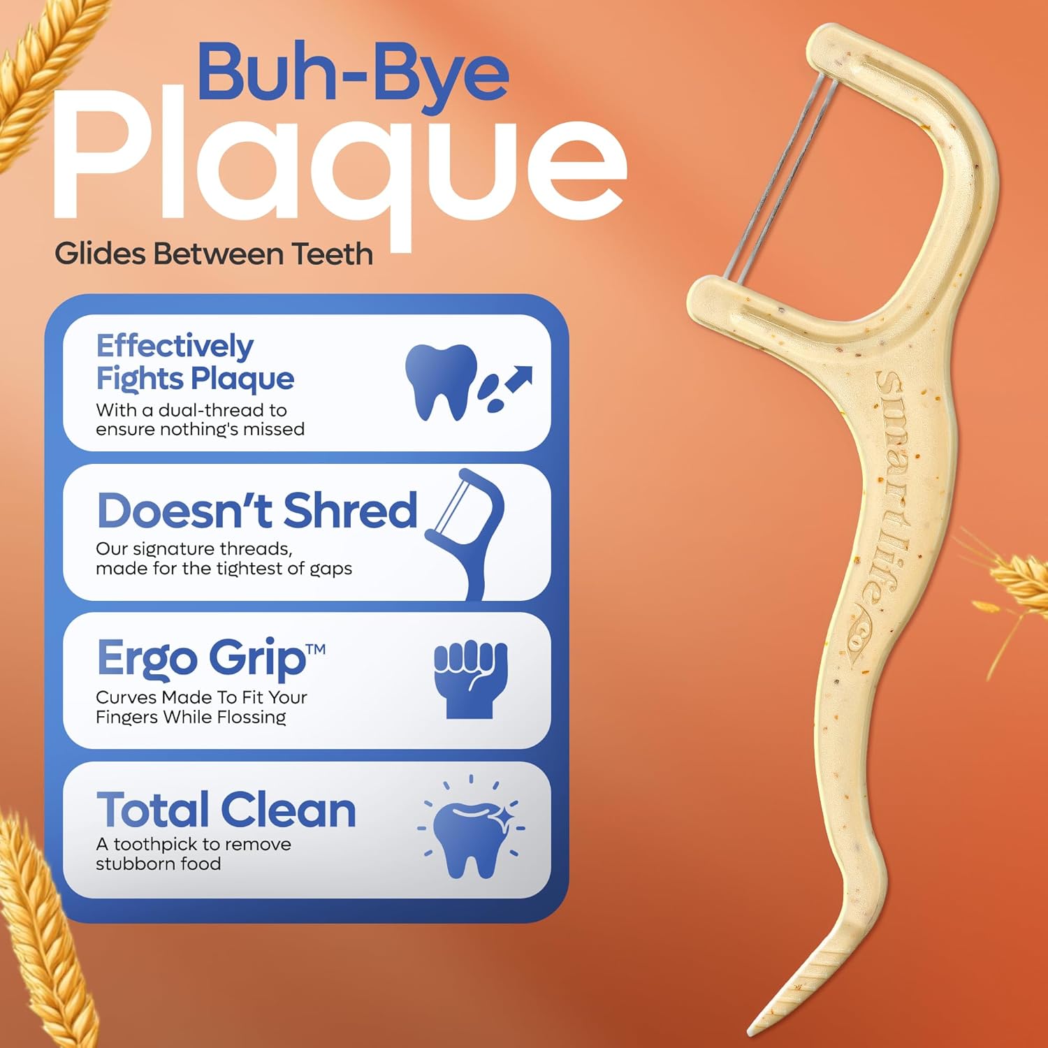 - ♻️ ORIGINAL STRAW WHEAT BLEND: We're The First To Introduce Flossers Made from a Mixture of Straw Wheat (Gluten-Free!) and PLA, a Plant-Based Plastic Made from Renewable Resources. Even the Packaging Is Made from Recyclable Materials, Giving You the Best Floss Stick Alternative for Your Teeth.