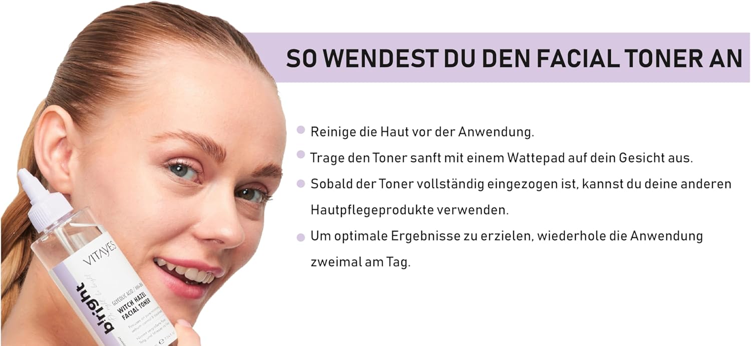 VITAYES b!Right Witch Hazel Toner for Face AHA, BHA & Glycolic Acid - Pore Reducing & Deep Cleansing - Premium Skin Care Essence for Radiant Beauty 6.76 Fl Oz (Pack of 1)