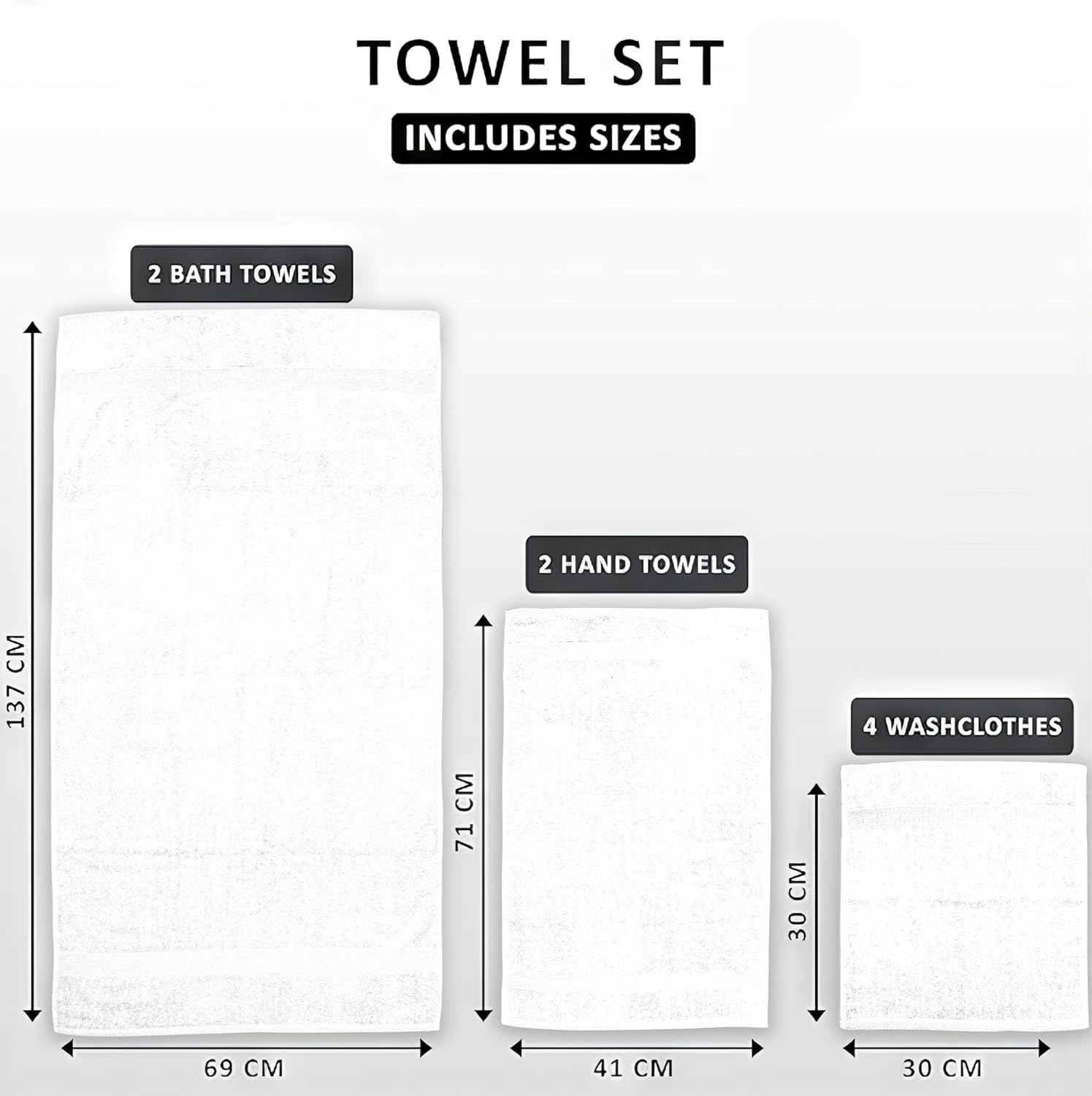 - Softolle Set of 8 Towels: Pamper yourself with 2 Premium bath towels (27 x 54 inches), 2 soft hand towels (16 x 28 inches), and 4 cozy washcloths (12 x 12 inches).