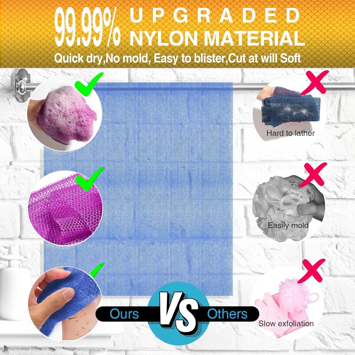 - 【Better quality material】Crafted from a safe and reliable new type of nylon, our long bath net sponge is durable and built for extended use. It's lightweight yet powerful, creating a rich soap lather. Washing machine-friendly and quick to dry due to its porous nature, ensuring a clean and enjoyable bathing experience.