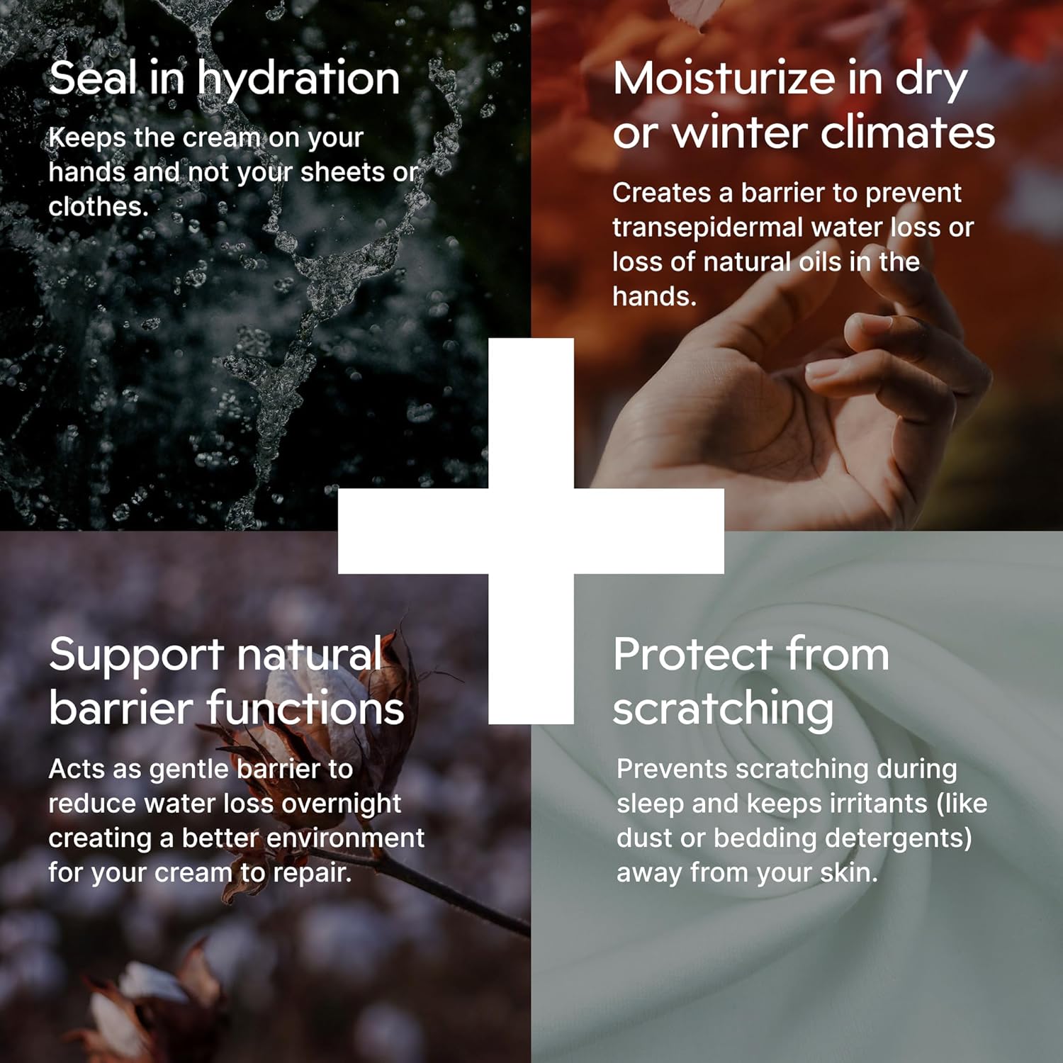 - Eczema Relief: Designed to aid post-eczema recovery, these moisturizing gloves for dry hands create a barrier to prevent scratching and irritation. Experience overnight hydration as these gloves help retain moisture for rejuvenated, hydrated skin