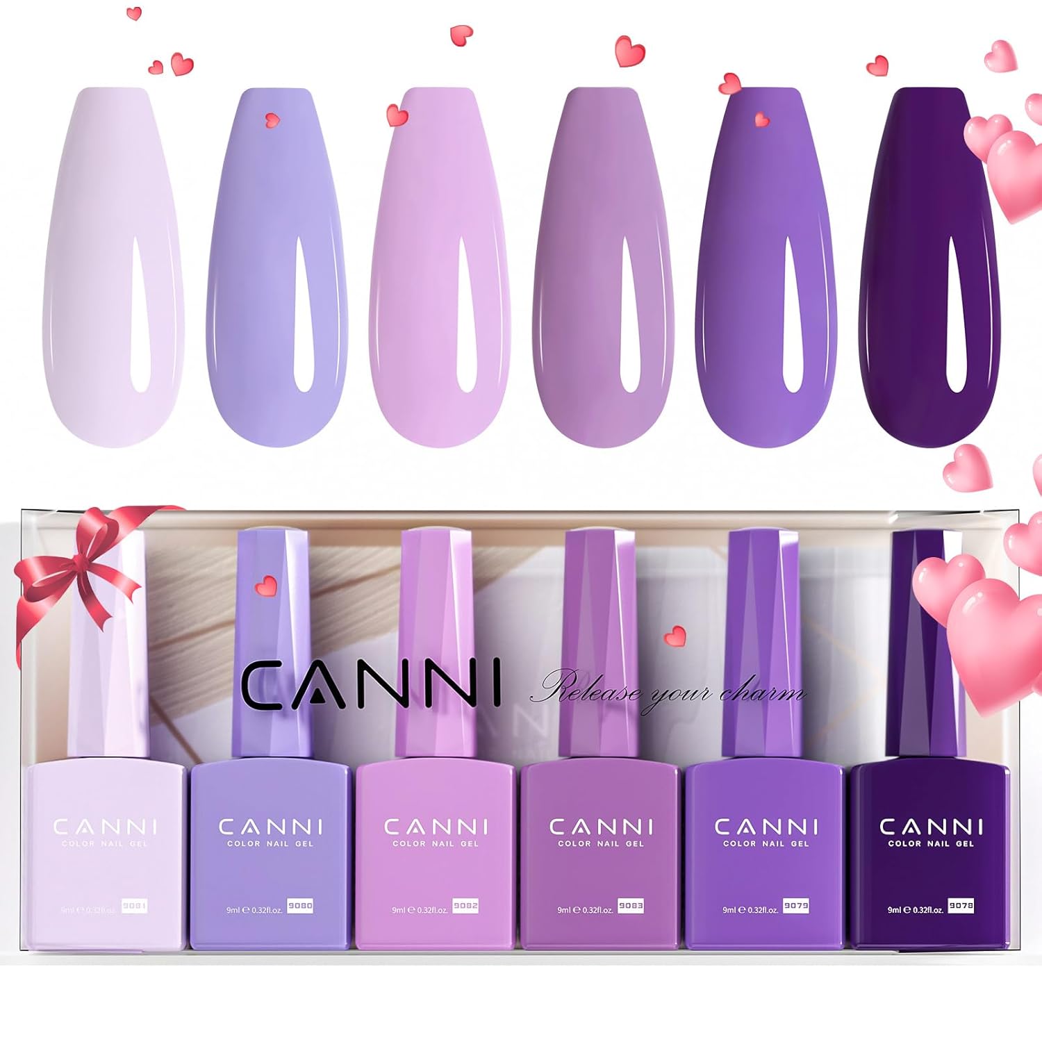 - ❤HEMA FREE FORMULA PURPLE GEL NAIL POLISH SET: 6Pcs x 9ml/0.32oz CANNI gel nail polish is specially formulated and does not contain HEMA, ensuring a safer and healthier nail care experience.