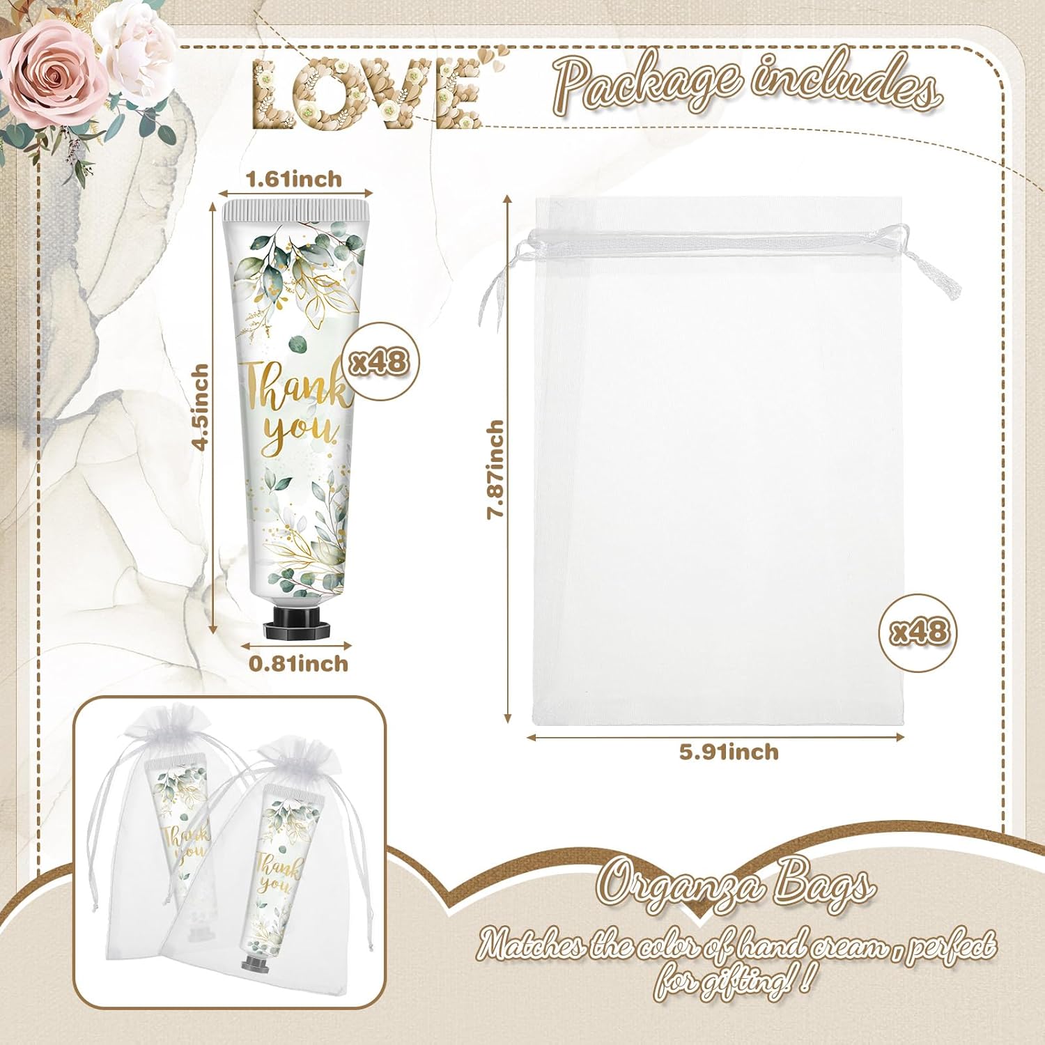 - Hand Cream Gift Set: you will receive 48 pieces of bridal wedding hand cream gift sets, includes 48 pieces of hand cream and 48 pieces of gift bags, the hand cream comes in 3 scents, 16 of each; Abundant quantity is enough for your daily use and replacement, and you can share them with your family, friends, colleagues