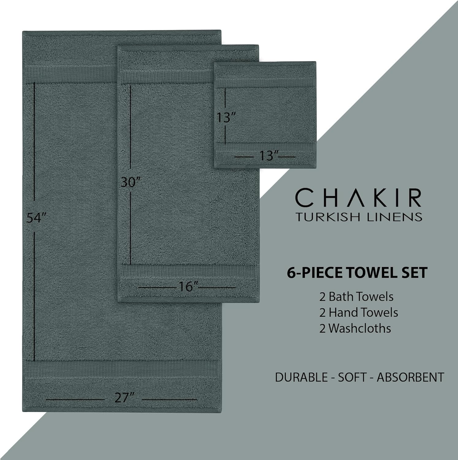 Chakir Turkish Linens |Hotel & Spa Quality 100% Cotton Premium Turkish Towels | Soft & Absorbent (Dark Gray, 6-Piece Towel Sets)