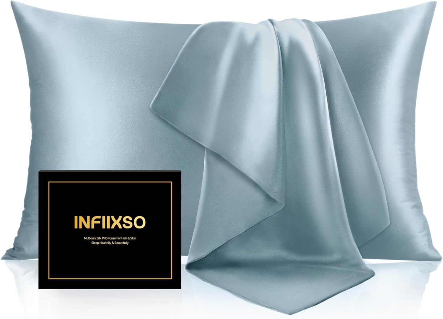 - 【Ultra Smooth and Soft】-- Silk is a kind of natural high-grade fiber, with light and soft, moisture absorption, skin comfort, and other characteristics. INFIIXSO Mulberry silk pillowcases are offering a soft and smooth touch for the ultimate sleeping experience, ensuring you enjoy maximum comfort every night.