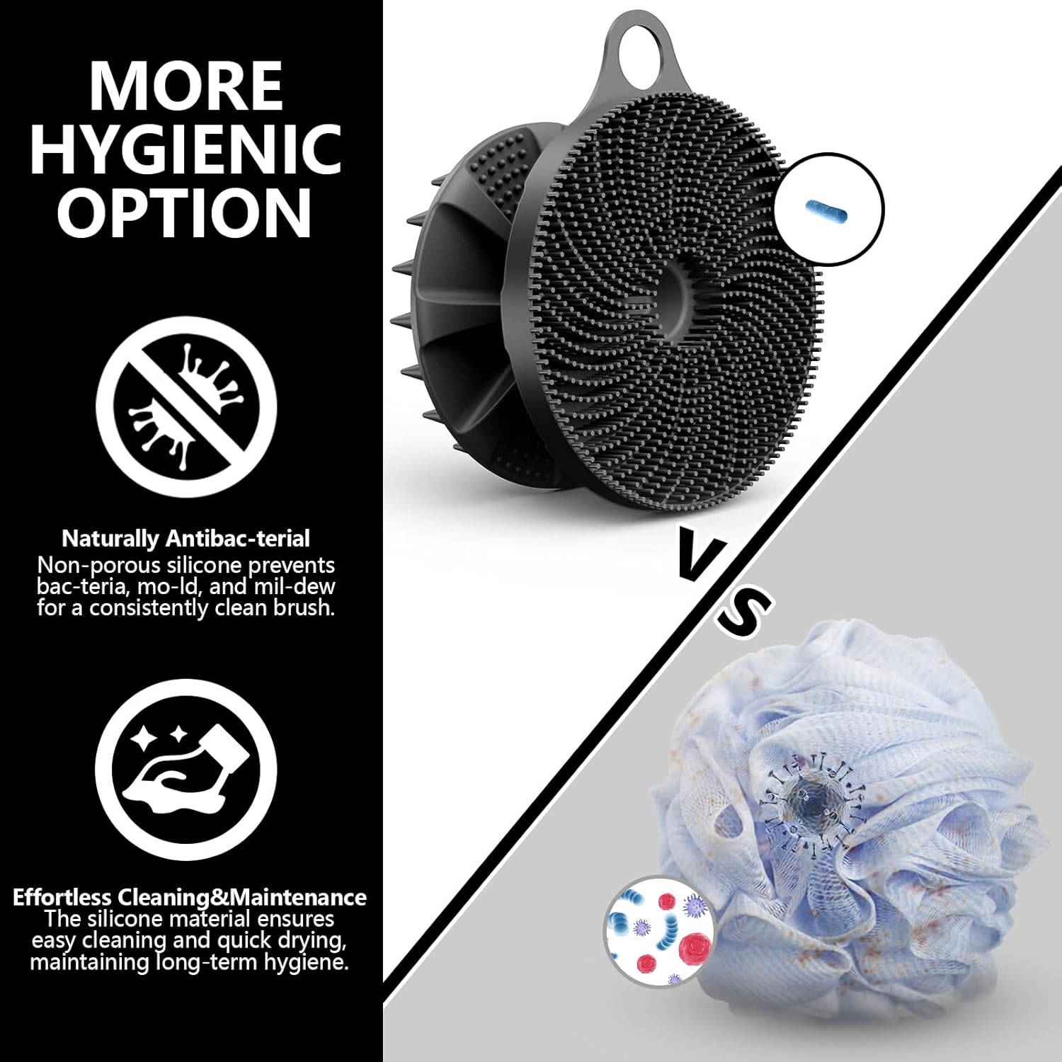 - MORE HYGIENIC OPTION: BEAUTAIL brush is made from non-porous, antimi-crobial silicone. It doesn't absorb water, dries quickly, and is less prone to mo-ld and bac-teria buildup. Achieve a deep clean by boiling it in hot water. With proper care, it can be reused almost indefinitely, reducing the need for frequent repurchases and minimizing waste.