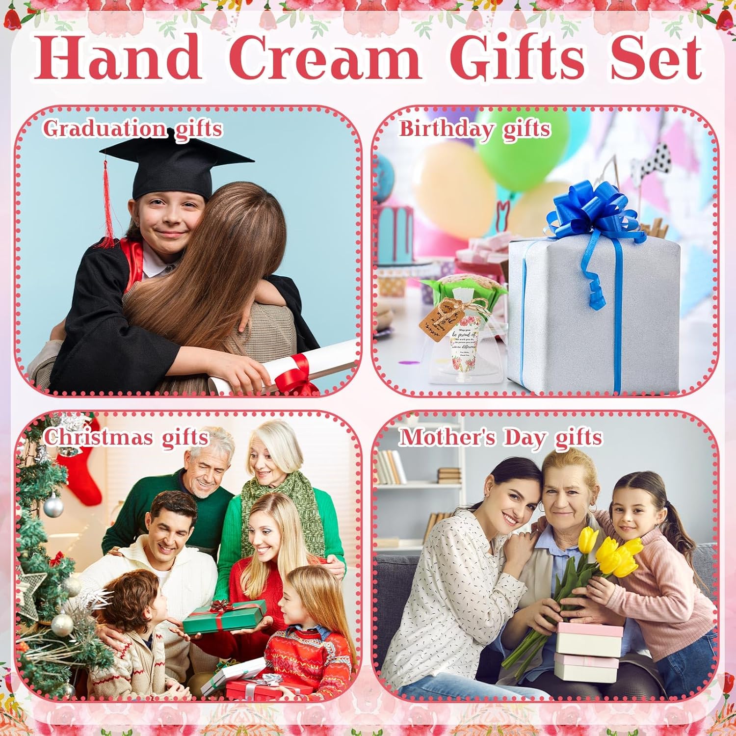 - Hand Cream Gift Set: this gift set is an ideal gift set for women; The scent of blossoms will make you feel comfortable and relaxed, enhance your spirit, and nourish your soul; The set includes 48 hand creams, 48 organza bags, and 53 cards, enough to share with your family and friend during weddings, Mother's Day, Christmas, and other holidays
