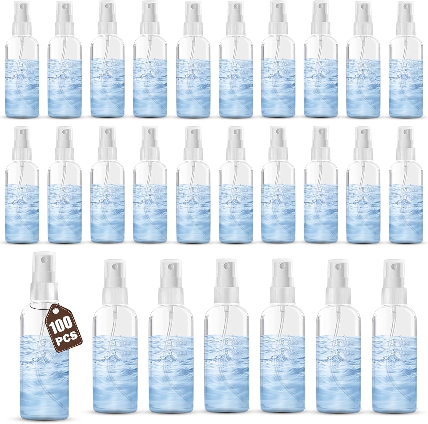 - 100PCS 2OZ SMALL SPRAY BOTTLE: Package include 100pcs 2oz/60ml refillable spray bottles; The transparent bottle allows you to accurately identify the liquids what you are stored. Perfect small spray bottle to fulfill all you need when you are travel or going outside.