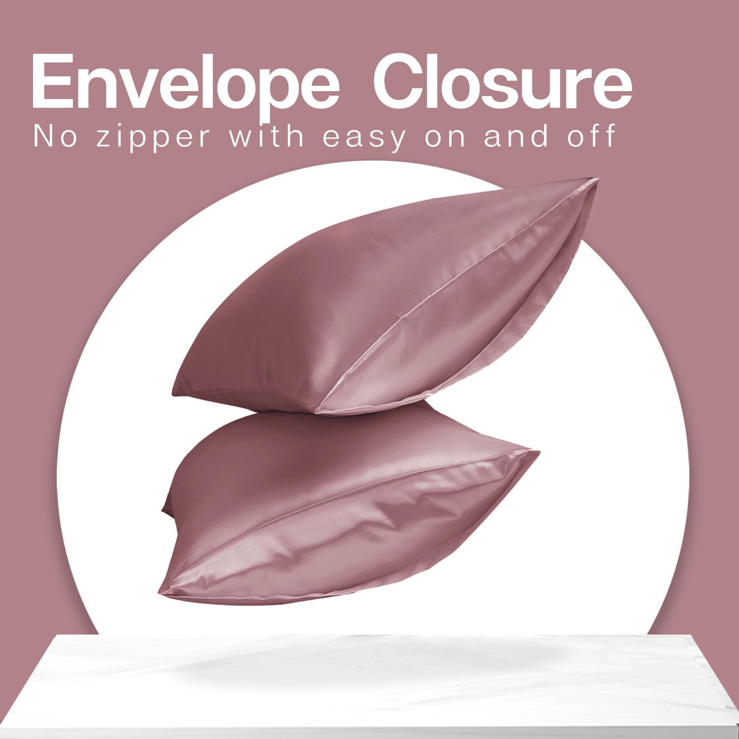 MR&HM Satin Pillowcase for Hair and Skin, Silk Satin Pillowcase 2 Pack, King Size Pillow Cases Set of 2, Silky Pillow Cover with Envelope Closure (20x36, Rose Taupe)