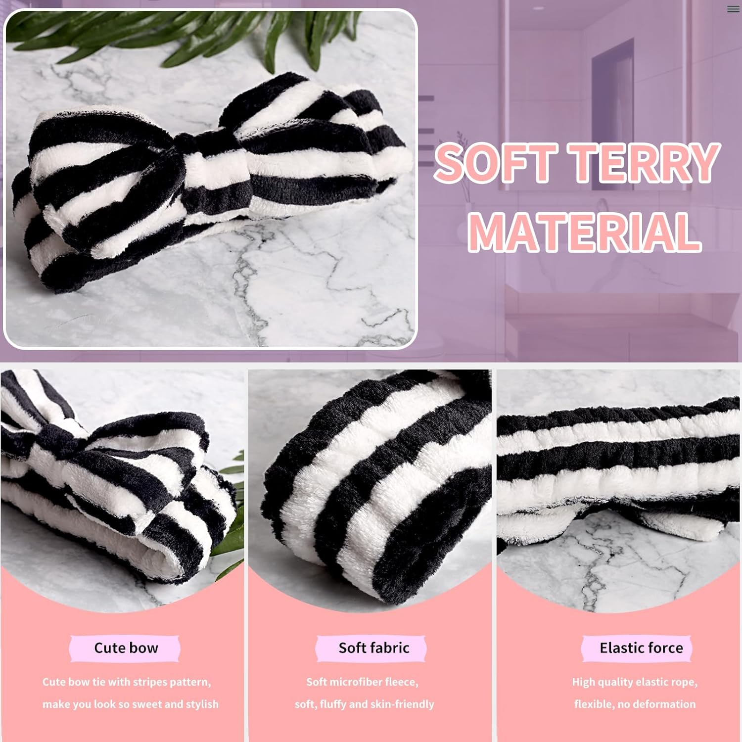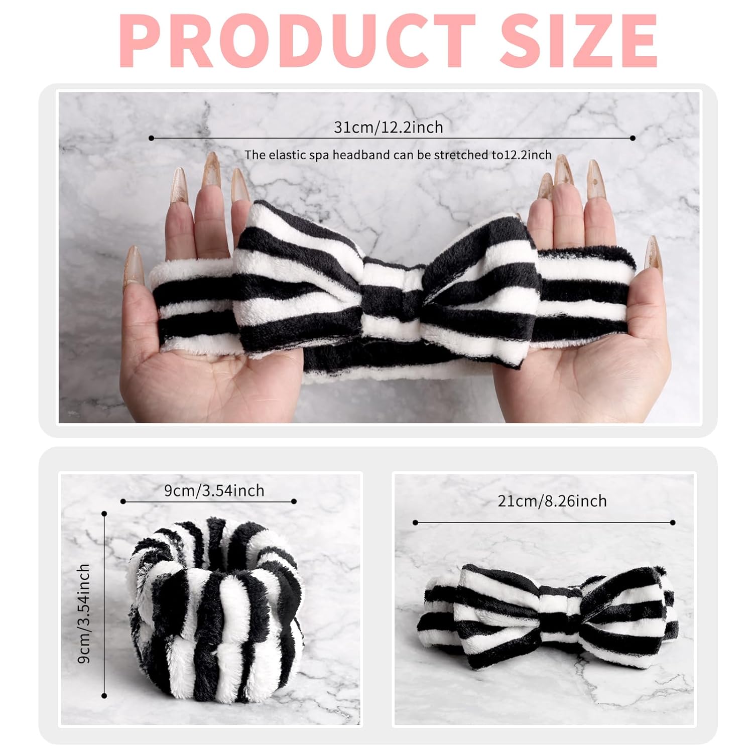 - Trendy black white stripe design: Adorable bow with black/white stripe pattern on the the spa headband wrist towel, Sweet appearance make you look super young and vibrant, classic black white color easily match different dress style, the cute bow tie also is most favorite decoration for kids.