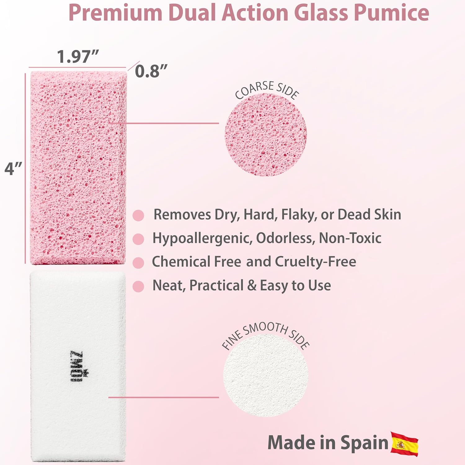 - Premium Siliglass Pumice Stone β Crafted with premium siliglass that works more effectively at softening hard calluses, dead skin buildup, and corns this foot pumice stone helps you maintain softer, smoother skin all on those tough or rugged areas.