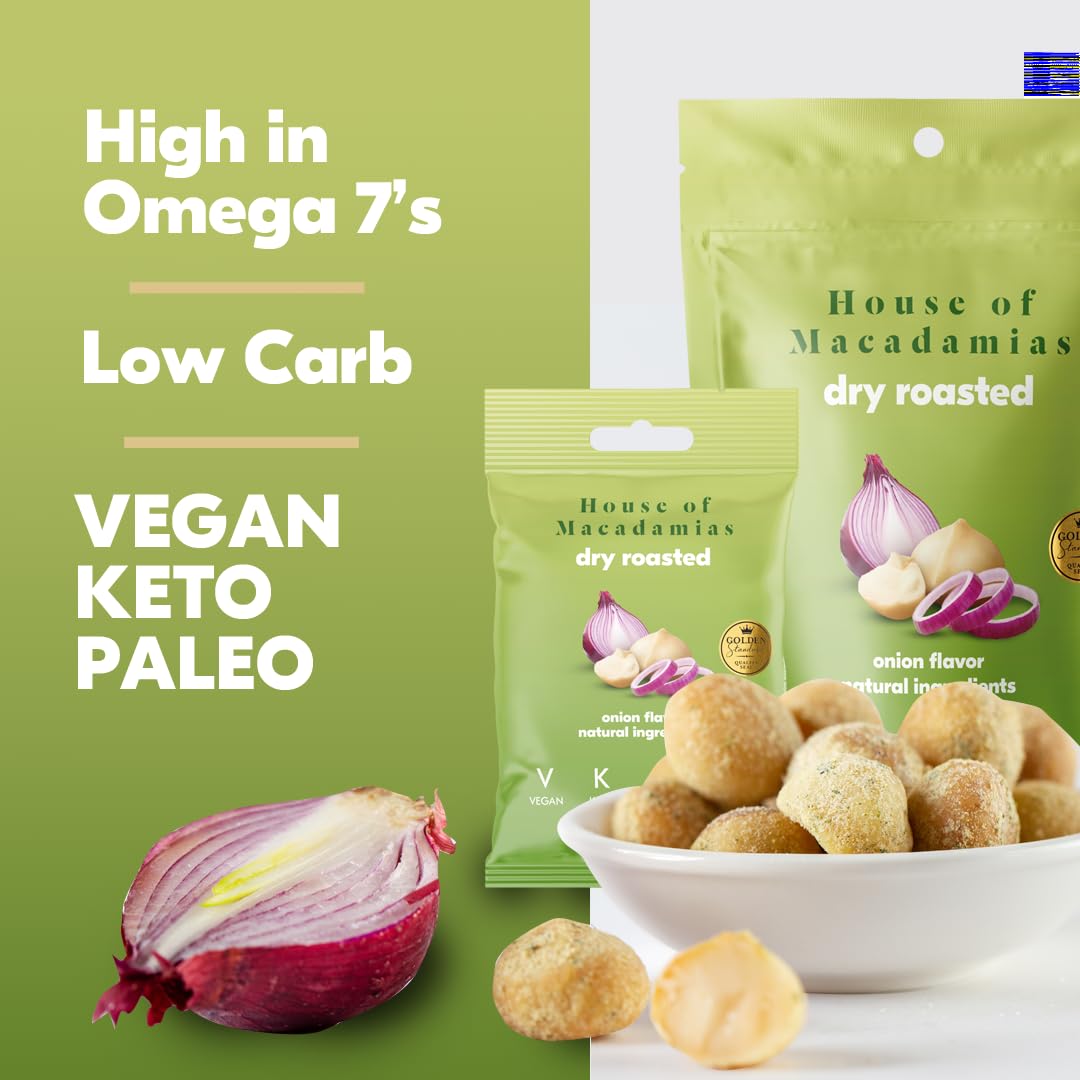 House of Macadamias Premium Seasoned Macadamia Nuts, Onion, Zero Sugar, Bulk Nuts, Keto, Vegan, Paleo, All Natural, Dairy Free, Healthy Snack, 6 x 4oz