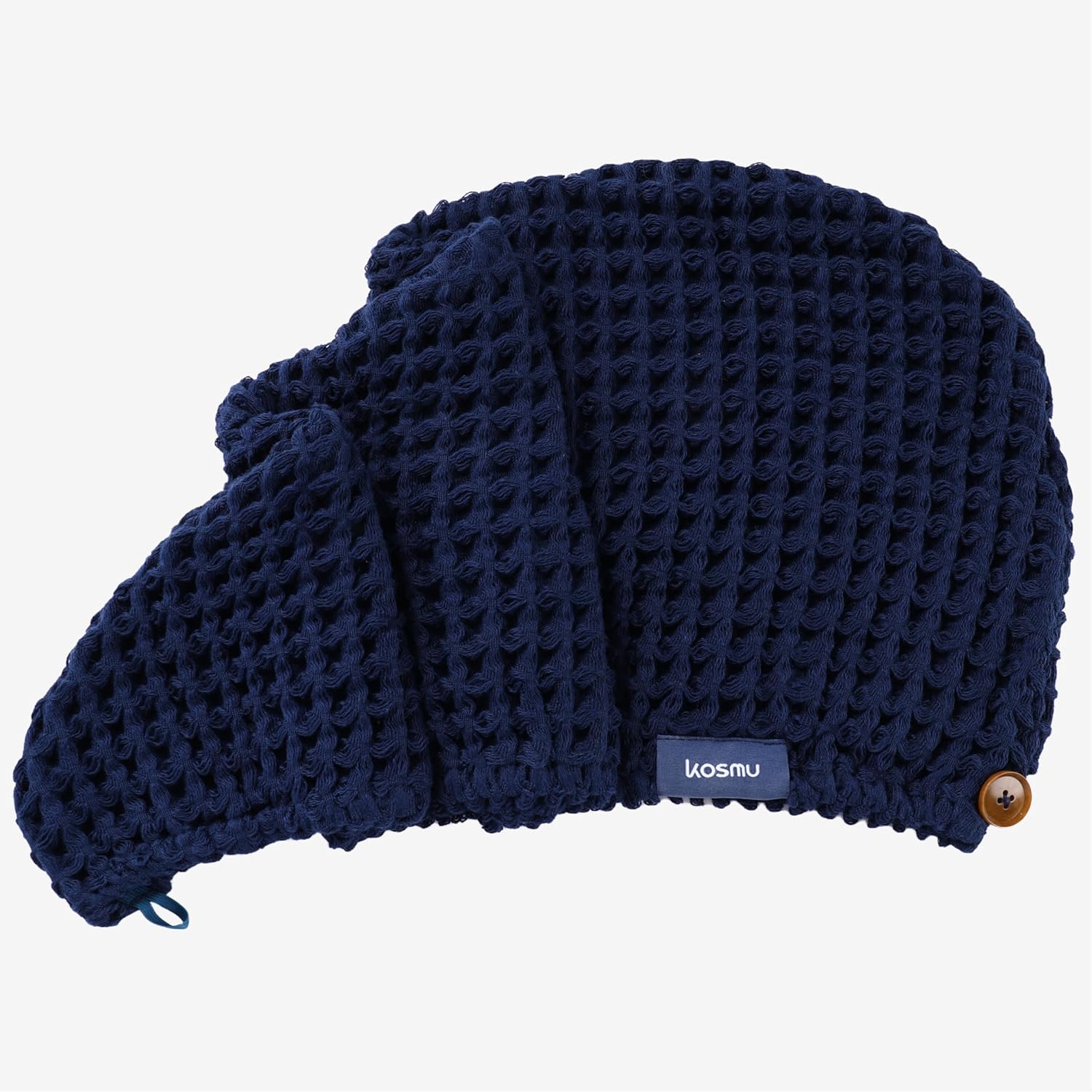 Hair Towel | 100% Cotton Silk Hair-Drying Waffle Wrap Turban for Women, Ultra-Absorbent, Anti Frizz, Hair Damage Protection for Straight and Curly Hair (Ocean Blue, Pack 1)