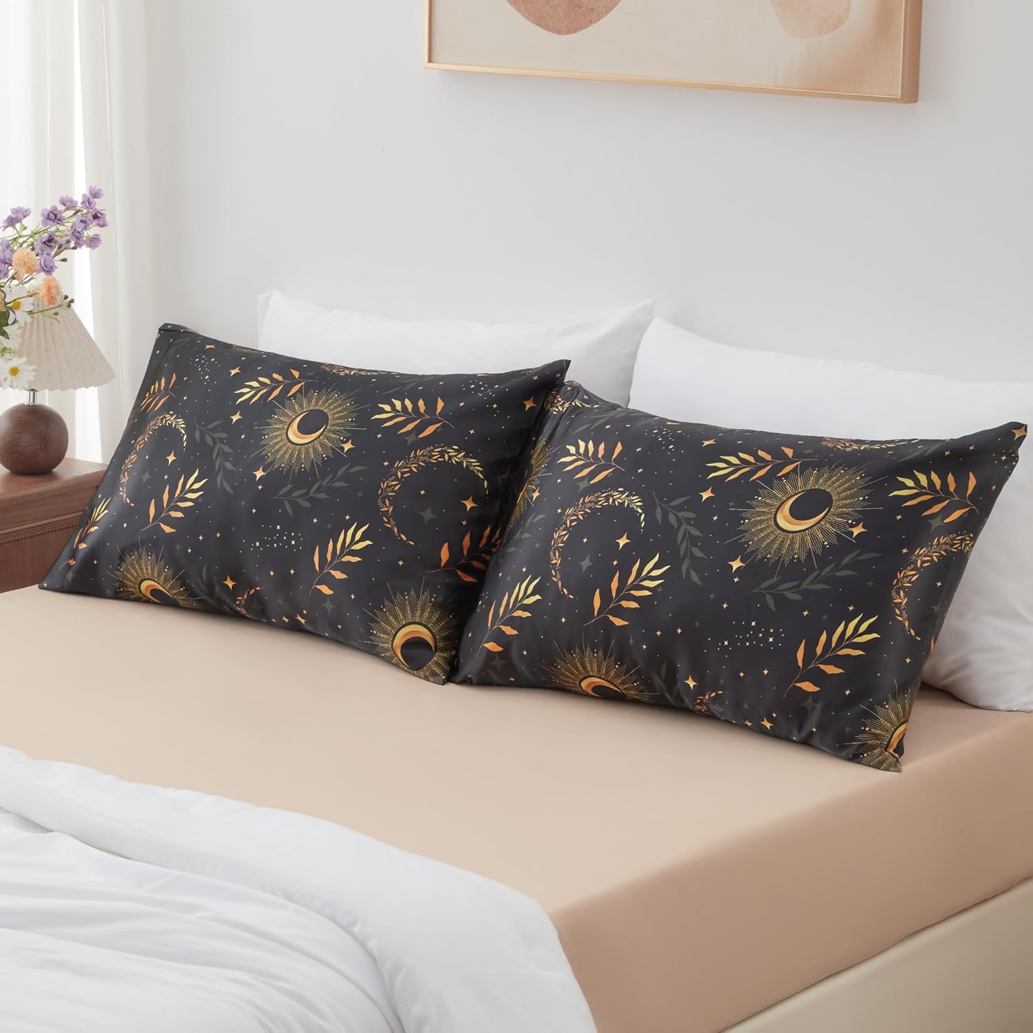 EXQ Home Satin Pillowcase for Hair and Skin Queen - Printed Black Moon Silk Pillowcase 2 Pack 20x30 inches - Satin Pillow Cases Set of 2 with Envelope Closure, Gifts for Women