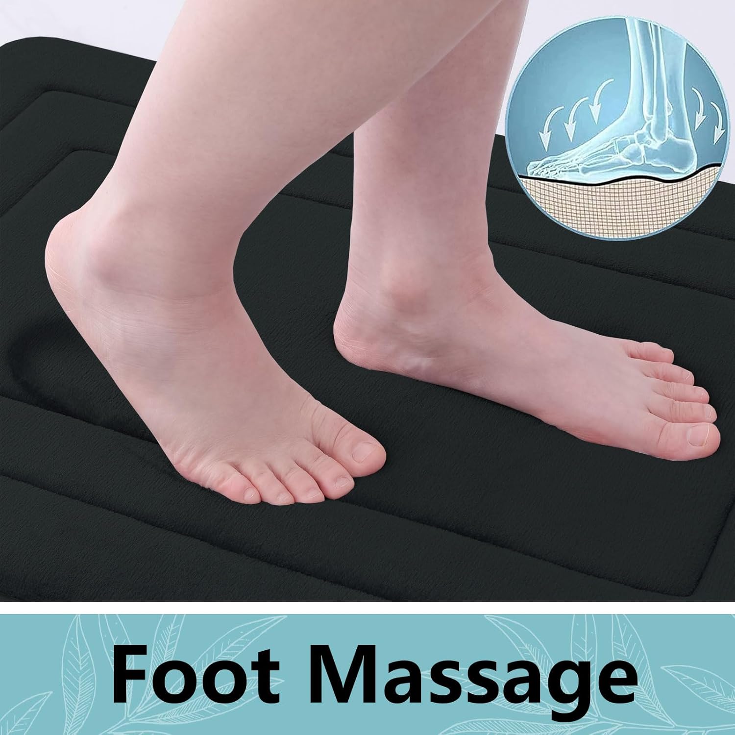 - Water Absorption : Our Memory Foam Bathroom Rug Mat features a soft flannel layer that has notable water-absorbing capability, ensuring a dry surface on the bathroom mat while keeping feet dry. Enjoy the convenience of a quick-drying and reliable bath mat