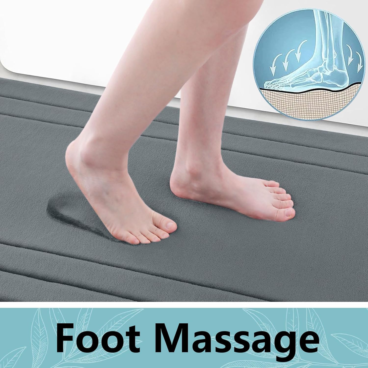 - Water Absorption : Our Memory Foam Bathroom Rug Mat features a soft flannel layer that has notable water-absorbing capability, ensuring a dry surface on the bathroom mat while keeping feet dry. Enjoy the convenience of a quick-drying and reliable bath mat