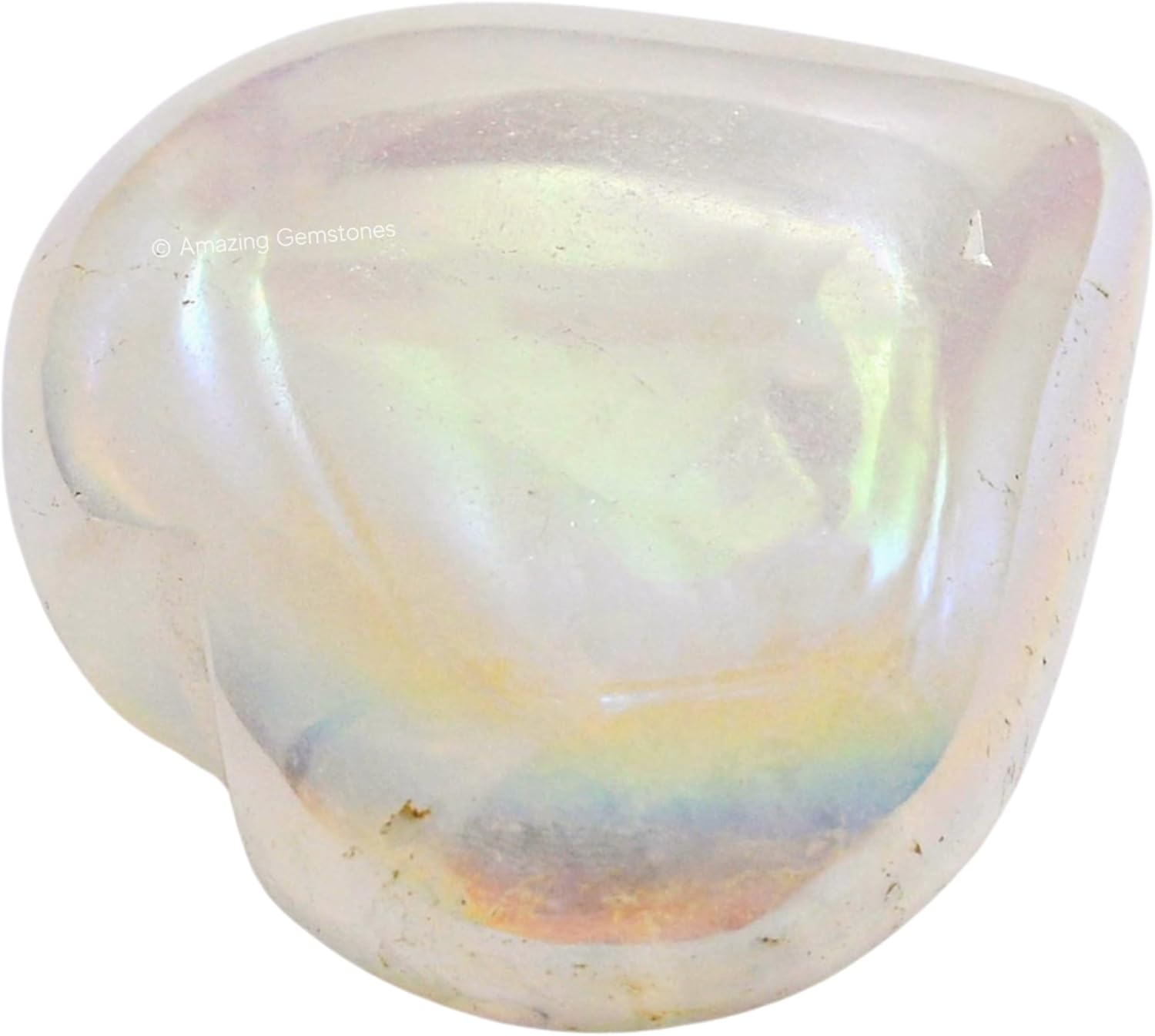 Amazing Gemstone Angel Aura Quartz Crystal Heart Palm Stone - Pocket Massage Worry Stone for Natural Body Chakra Balancing, Reiki Healing and Crystal Grid