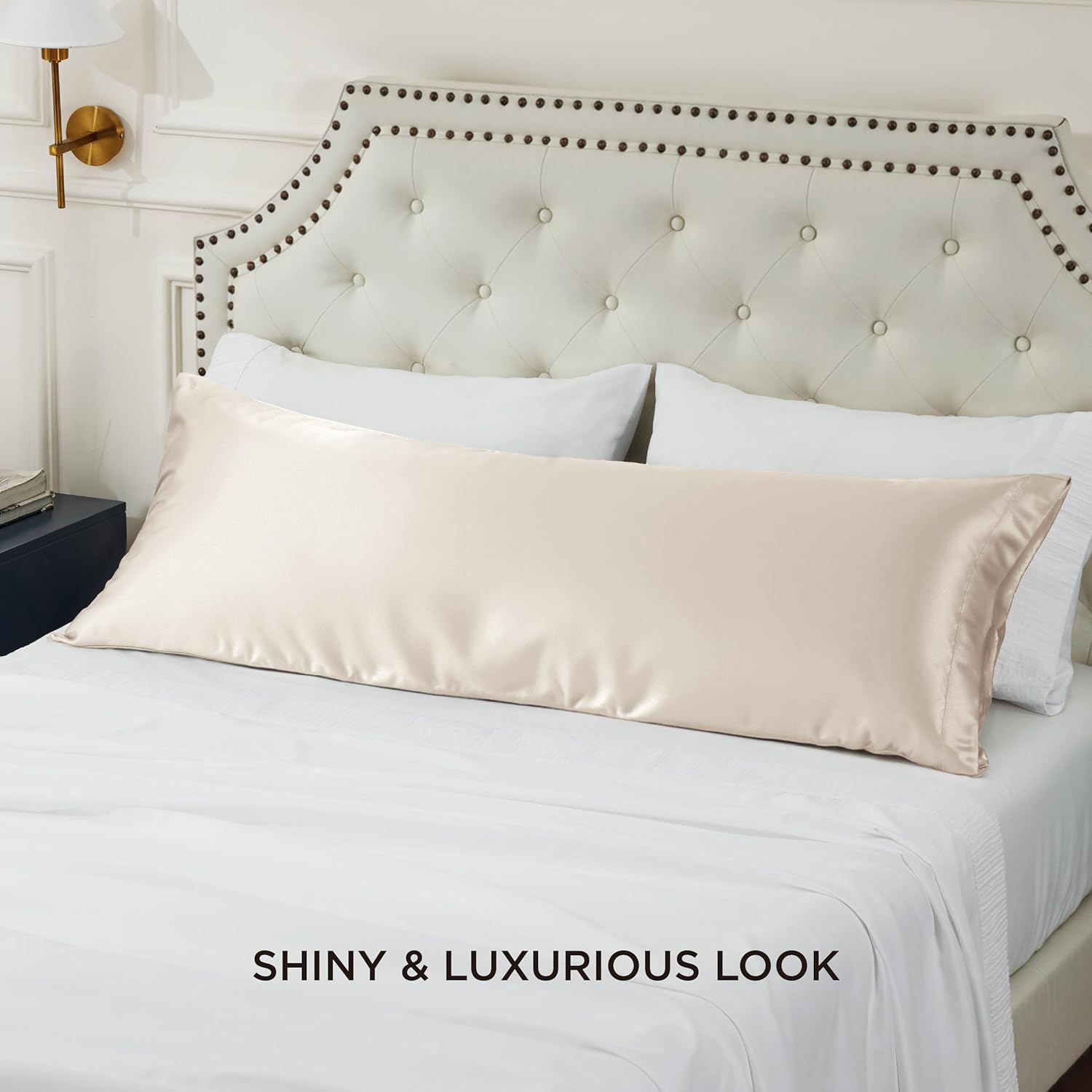 Bedsure Body Pillow Cover 20x54 Inches - Beige Satin Similar to Silk Pillowcase for Hair and Skin, Cooling and Silky Long Body Pillow Pillowcase with Envelope Closure, Gifts for Women Men
