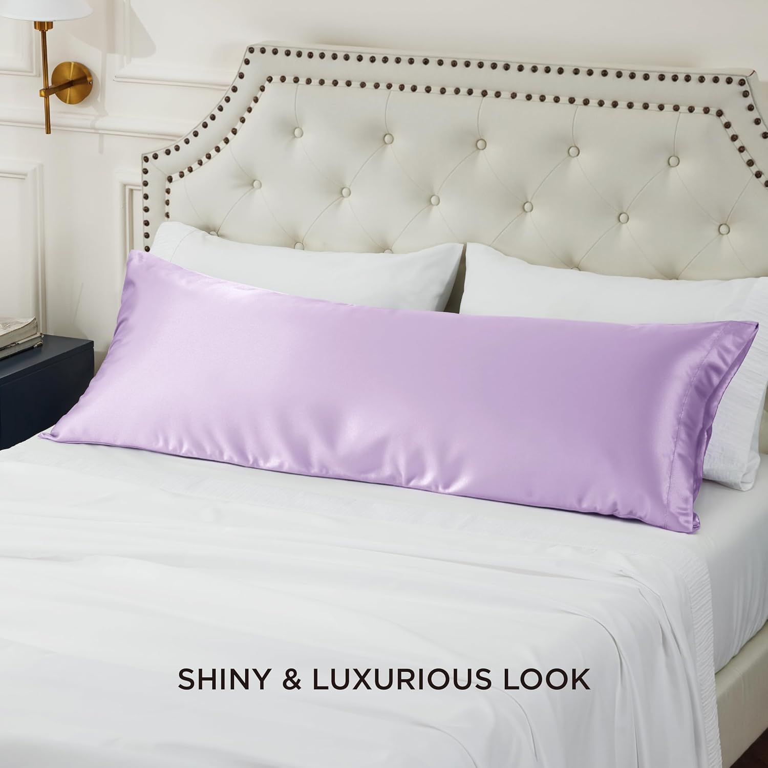 Bedsure Body Pillow Cover 20x54 Inches - Lavender Satin Similar to Silk Pillowcase for Hair and Skin, Cooling and Silky Long Body Pillow Pillowcase with Envelope Closure, Gifts for Women Men