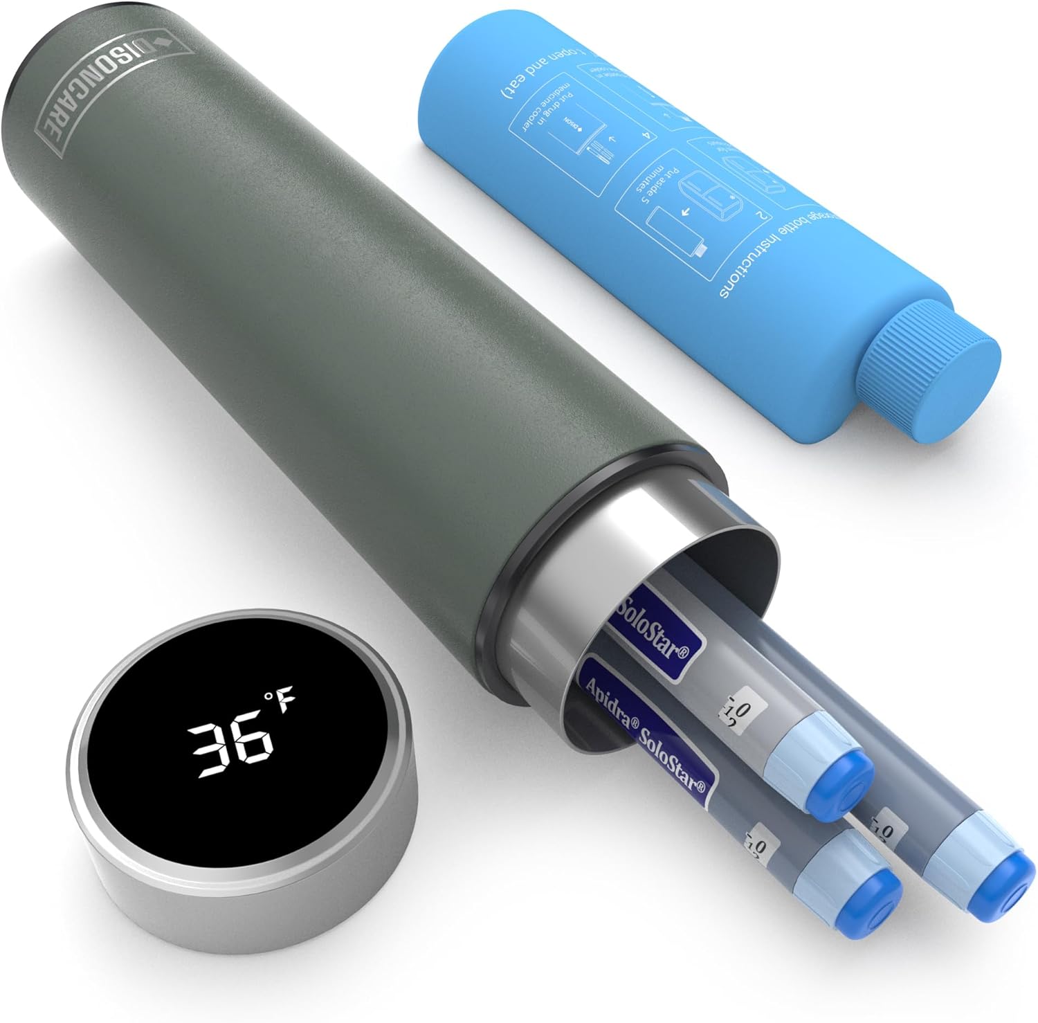 DISONCARE Odyssey 60H Insulin Cooler Travel case Digital Display Medication Cooler for Medicine Travel TSA Approved Ice Pack Diabetic Medical Cooler Diabetes Bag EpiPen with QR Medical Tag(Green)